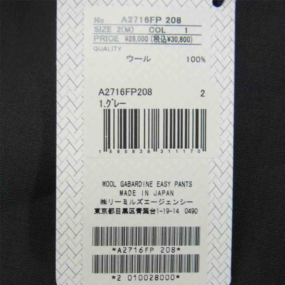 | 商品名 | A2716FP 208 WOOL GABARDINE EASY PANTS ウール ギャバジン イージーパンツ グレー |