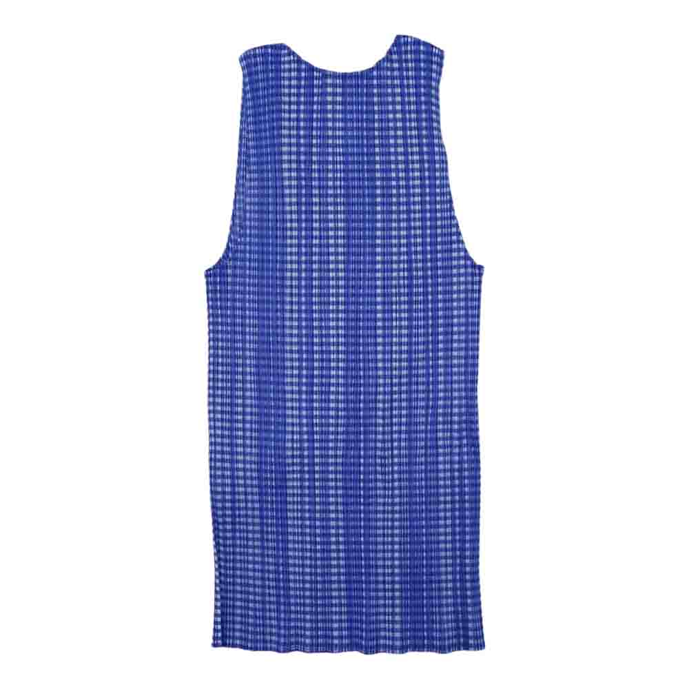 PLEATS PLEASE プリーツプリーズ イッセイミヤケ PP61-JK900 プリーツ加工 ギンガムチェック ノースリーブ カットソー 青 ブルー系 3【美品】【中古】