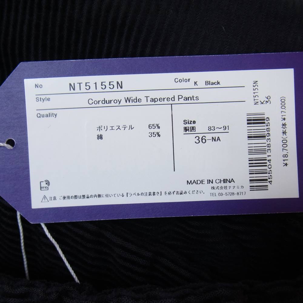 THE NORTH FACE ノースフェイス NT5155N PURPLE LABEL パープルレーベル Corduroy Wide Tapered Pants コーデュロイ ワイド テーパードパンツ ブラック系 36【新古品】【未使用】【中古】