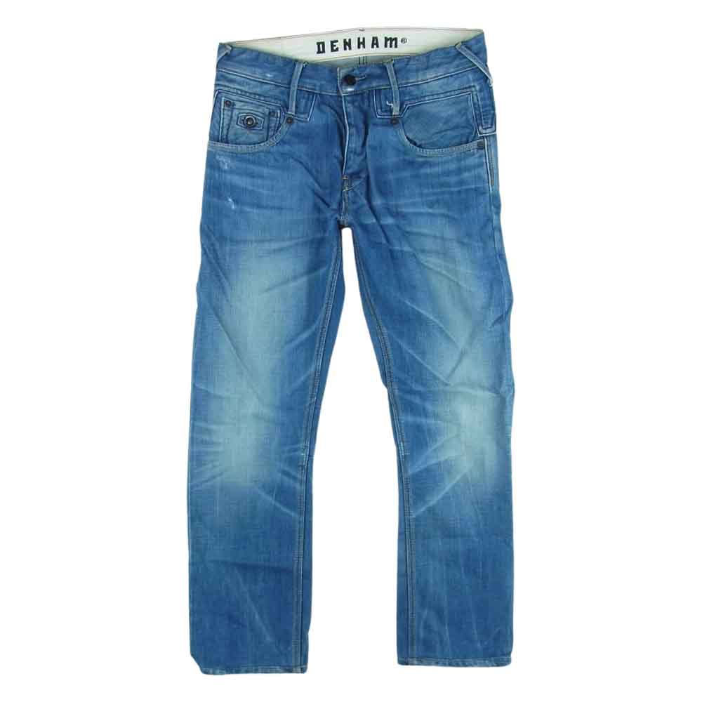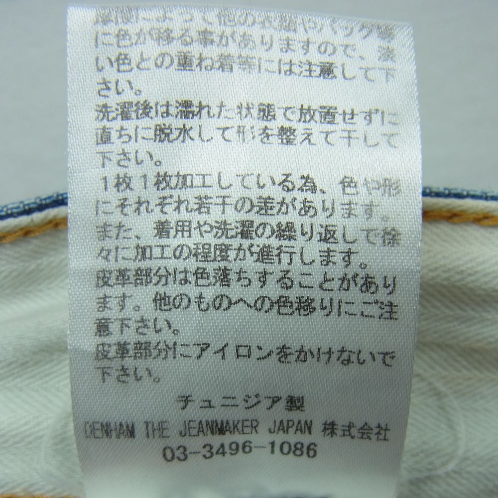 デンハム 5ポケット デニム パンツ コットン 牛革 チュニジア製 インディゴブルー系 W29【中古】