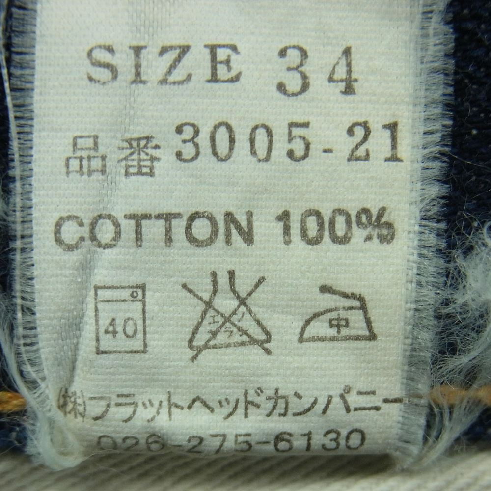THE FLAT HEAD ザフラットヘッド 3005-21 ストレート PIONEER SERIES デニム パンツ インディゴブルー系 W34 L36【中古】