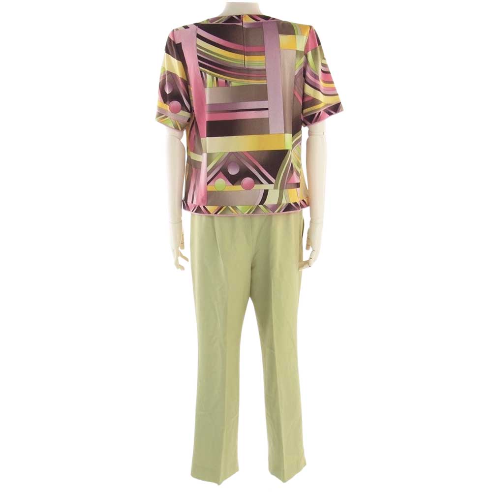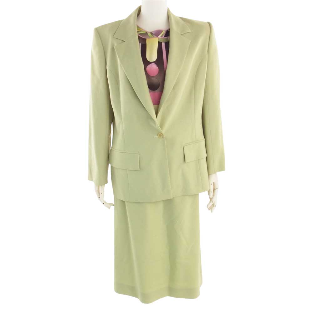 LEONARD レオナール FASHION ファッション ウール 1B ジャケット 総柄カットソー パンツ スカート 2WAY セットアップ ライトグリーン系 42【中古】
