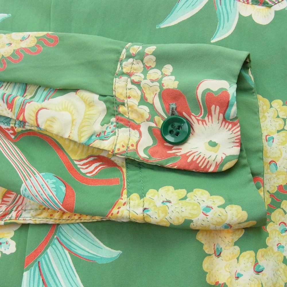 SUN SURF サンサーフ SS22139 アロハシャツ ロングアロハ マッキントッシュ ウクレレ 長袖 シャツ グリーン系 S【中古】