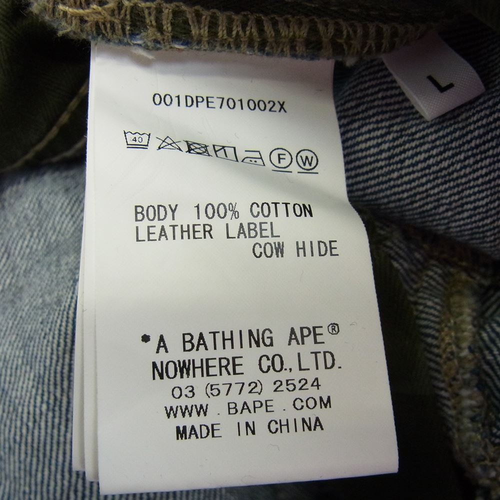 A BATHING APE アベイシングエイプ SLIM FIT DENIM JEANS スリム フィット デニム ジーンズ シンチバック スター刺繍 裏地カモ パンツ インディゴブルー系 L【中古】