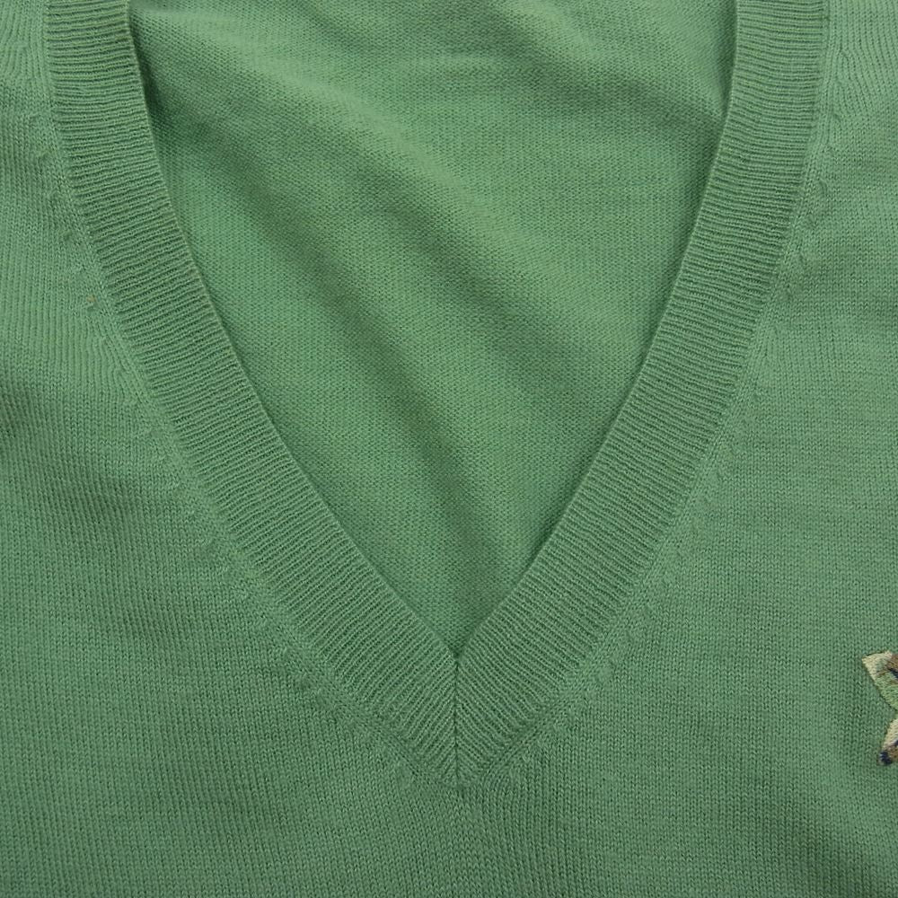 Lucien Pellat-Finet ルシアンペラフィネ カシミア スカル刺繍 Vネック ニット パイプスカル グリーン グリーン系 M【中古】