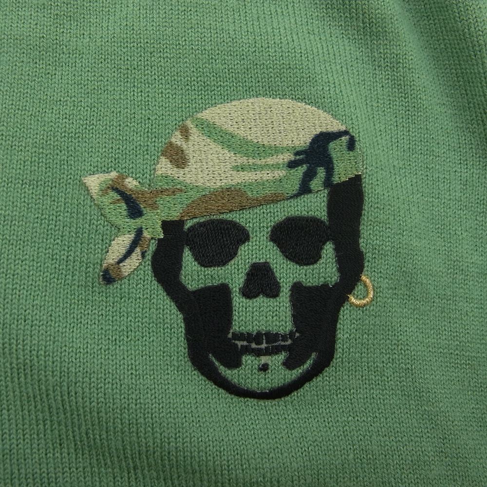 商品名 カシミア スカル刺繍 Vネック ニット パイプスカル グリーン