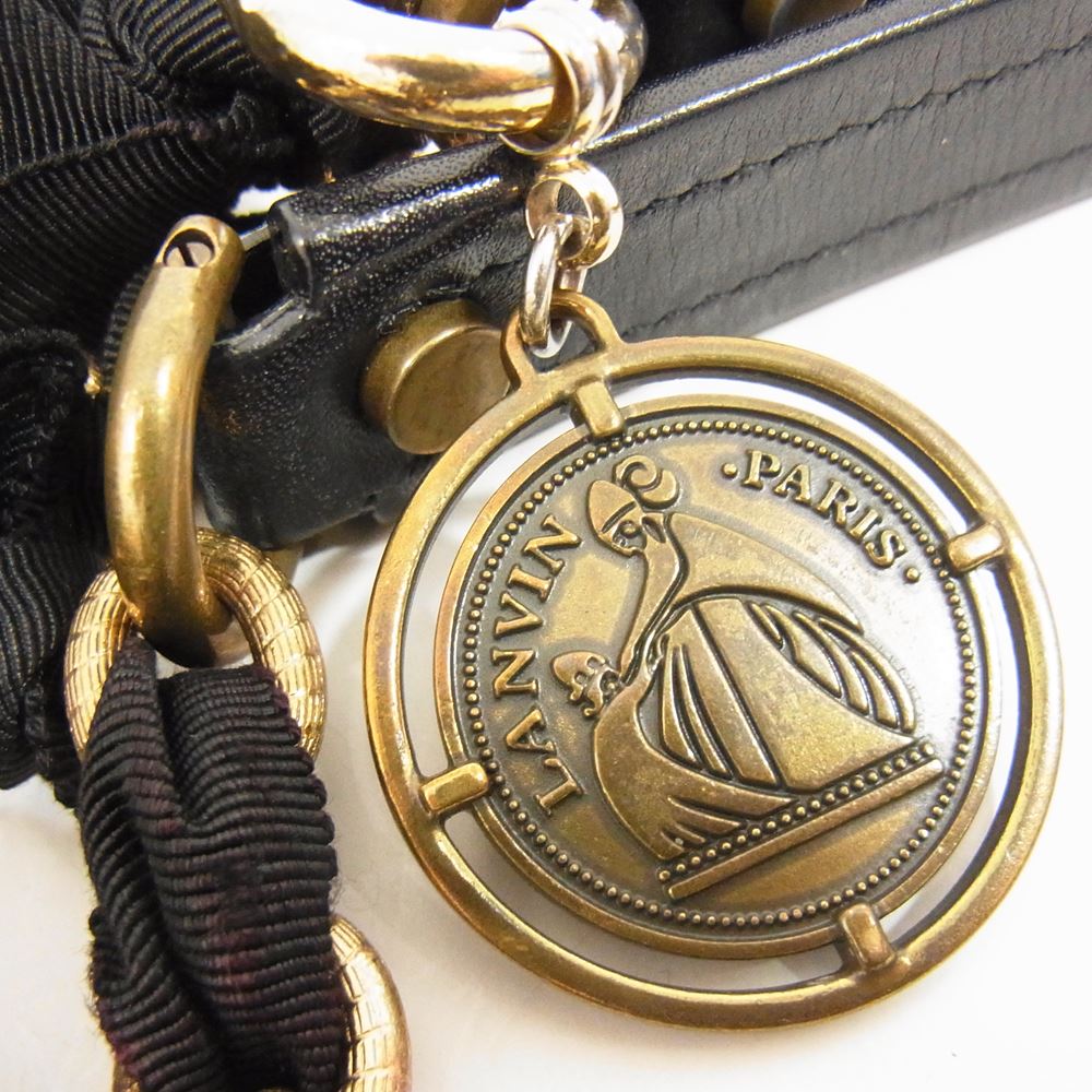 LANVIN ランバン イタリア製 キルティング レザー 2Way ハンド チェーン ショルダー バッグ ブラック系【中古】