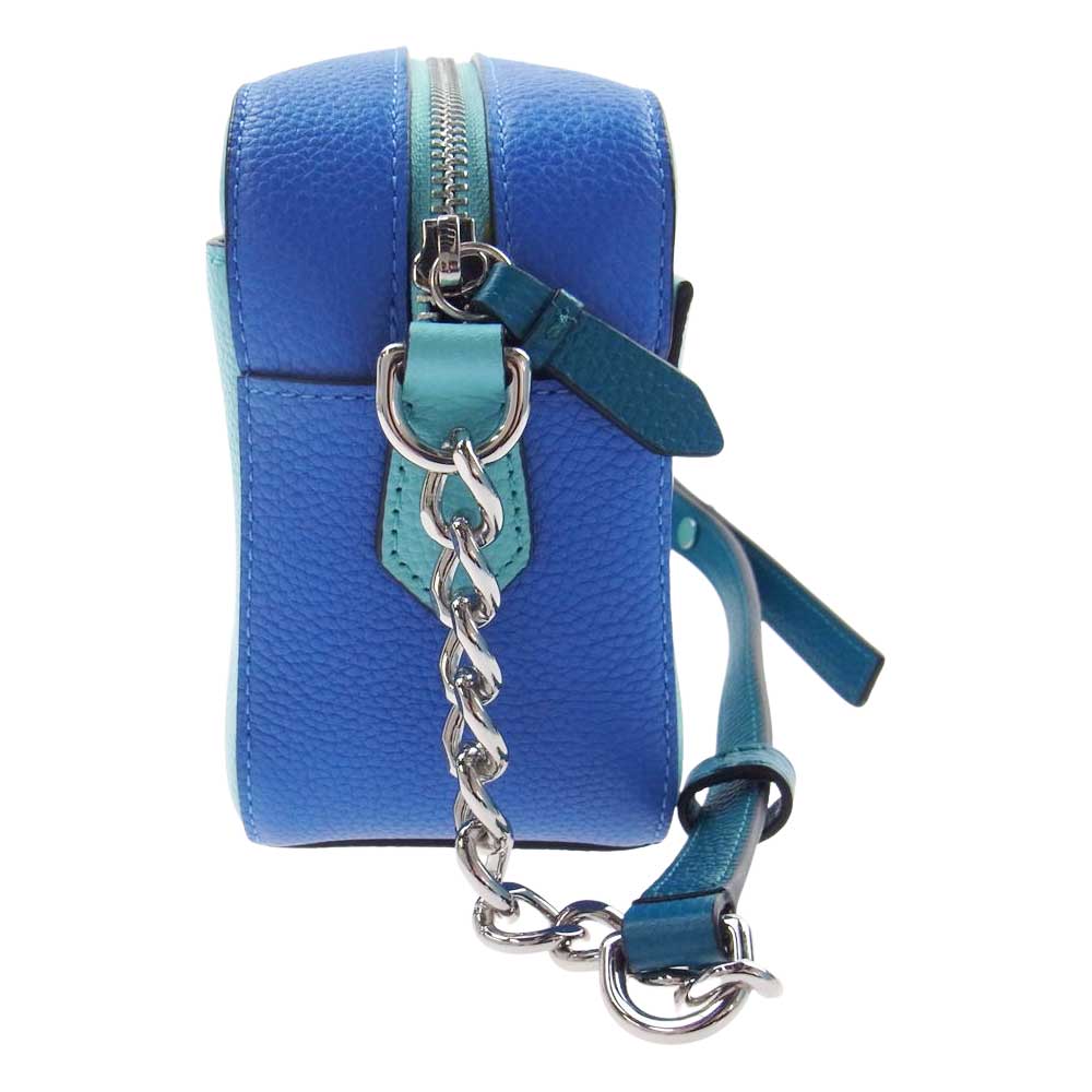COLE HAAN コールハーン ブルー パネル切替 レザー チェーン ショルダーバッグ ブルー系【美品】【中古】