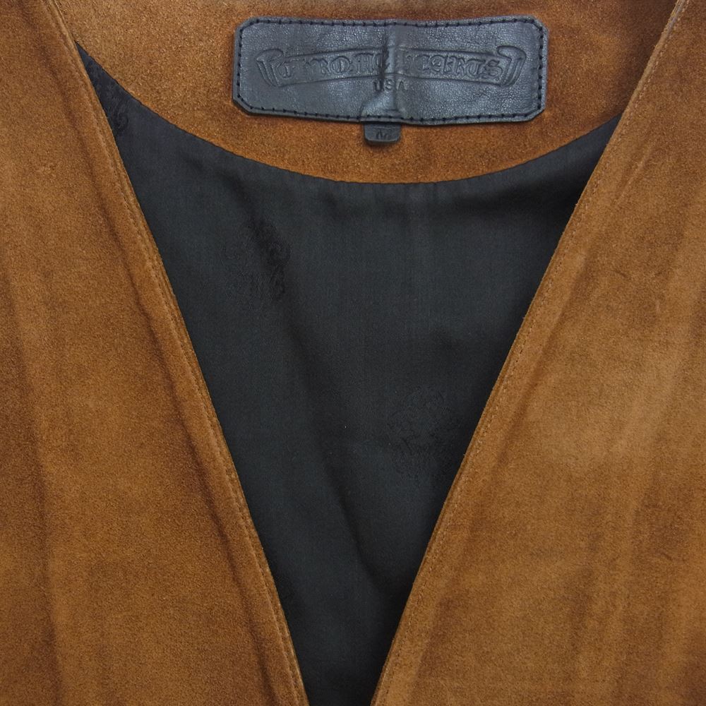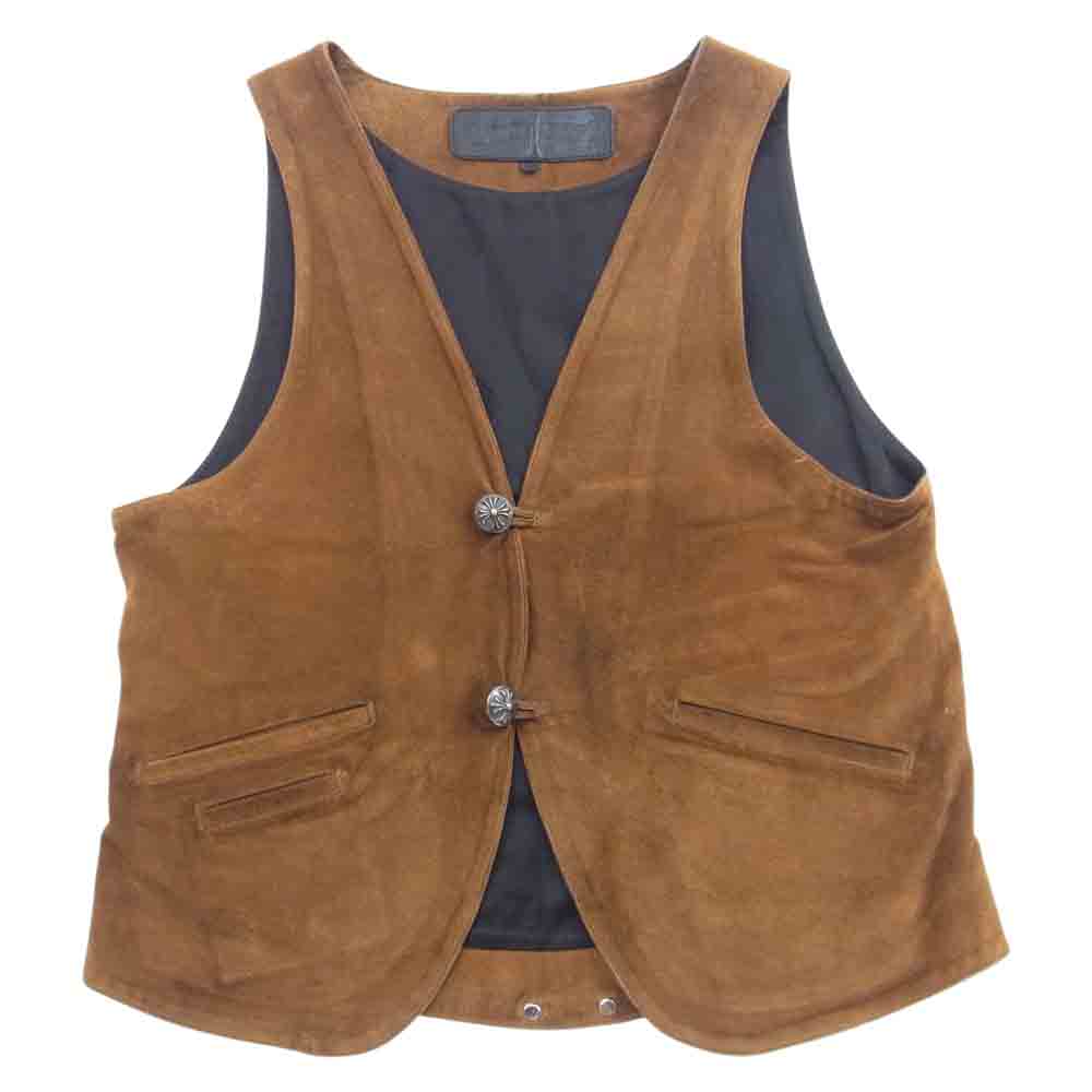 CHROME HEARTS クロムハーツ(原本無) クロスボールボタン スクロールラベル スエード レザー ベスト ライトブラウン系 M【中古】