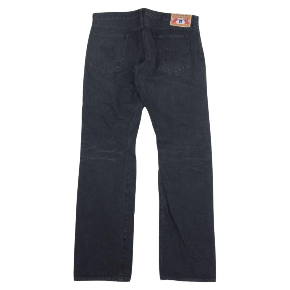 A BATHING APE アベイシングエイプ エイプスター 刺繍 ロゴ デニム パンツ ブラック系 L【中古】