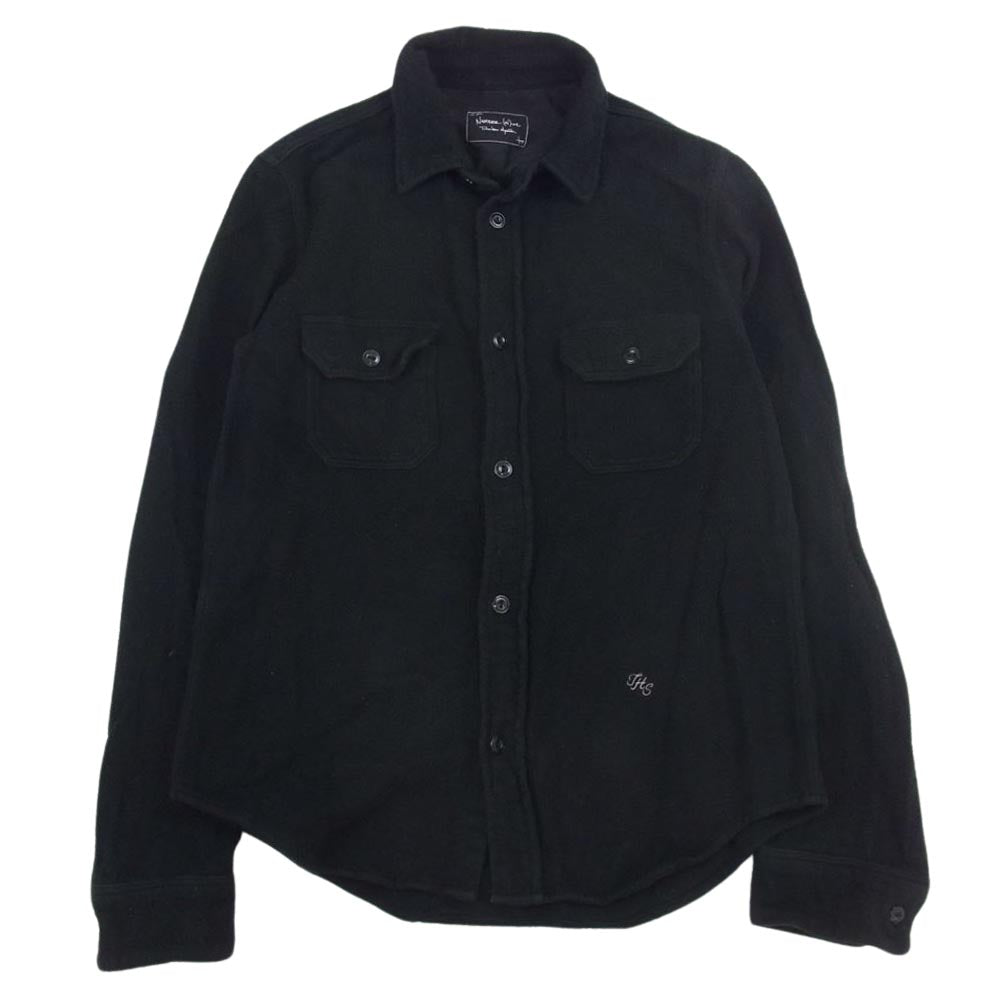 NUMBER(N)INE ナンバーナイン 05AW ハイストリート期 宮下貴裕 本人期 THS刺繍 ネップ加工 フランネル 長袖シャツ ブラック系 3【中古】
