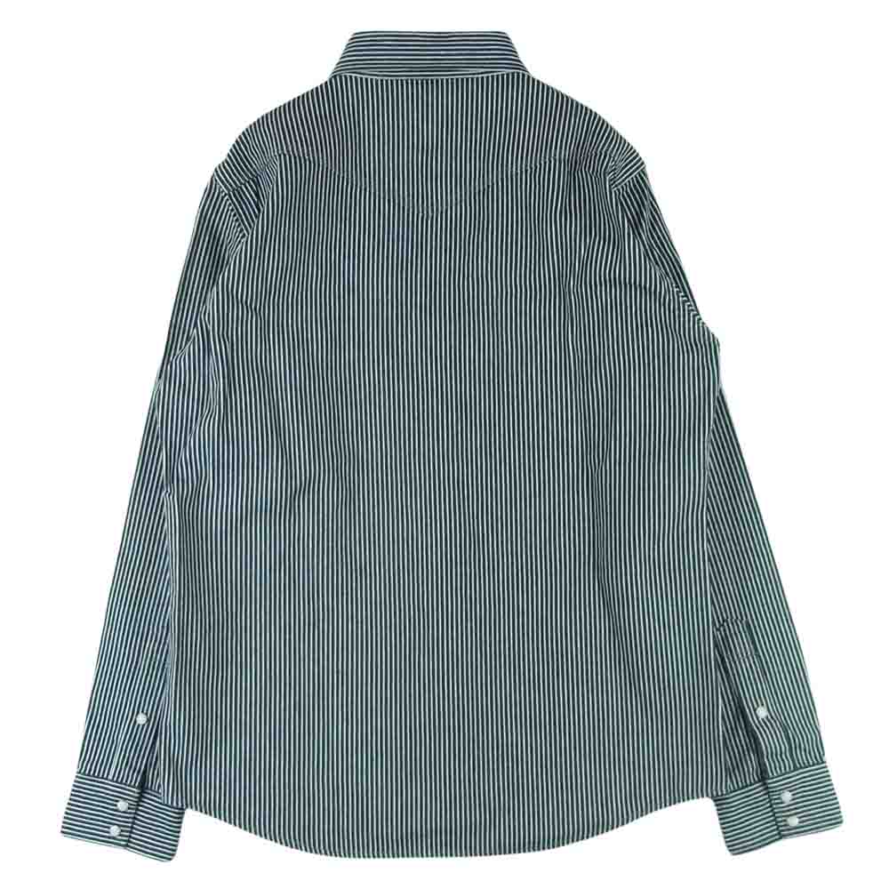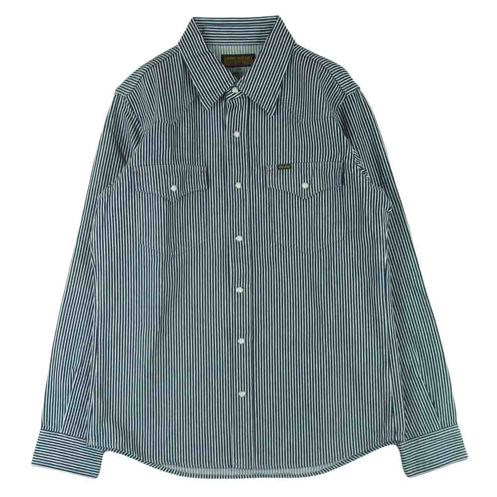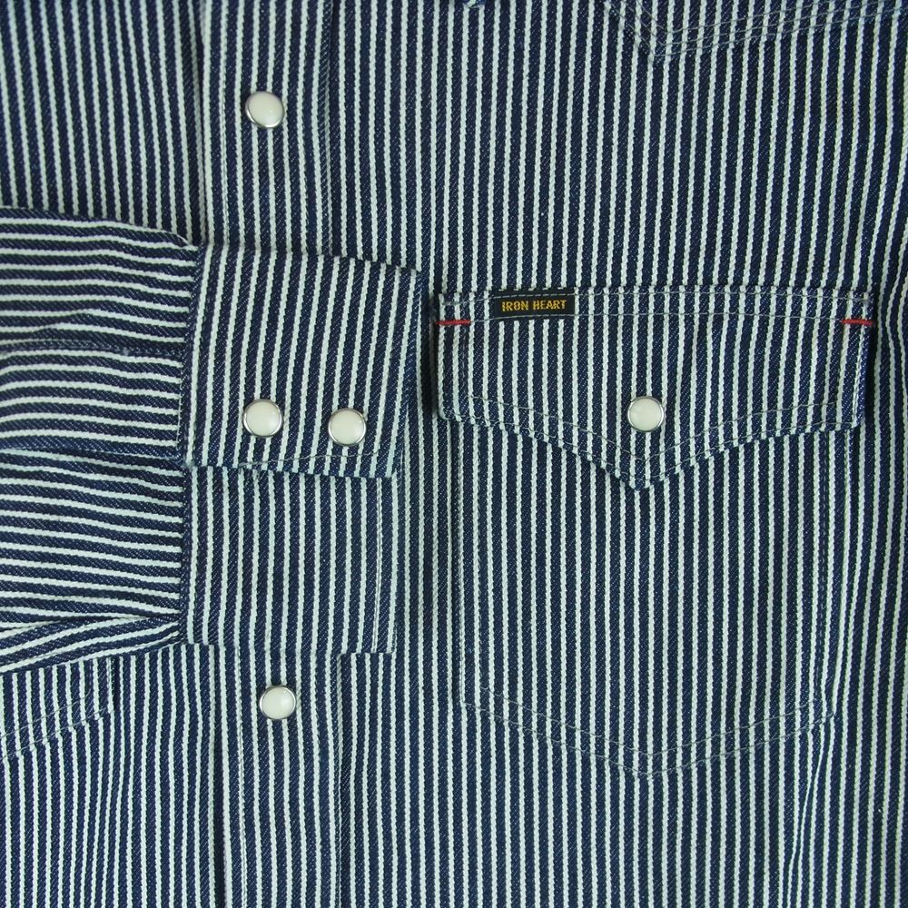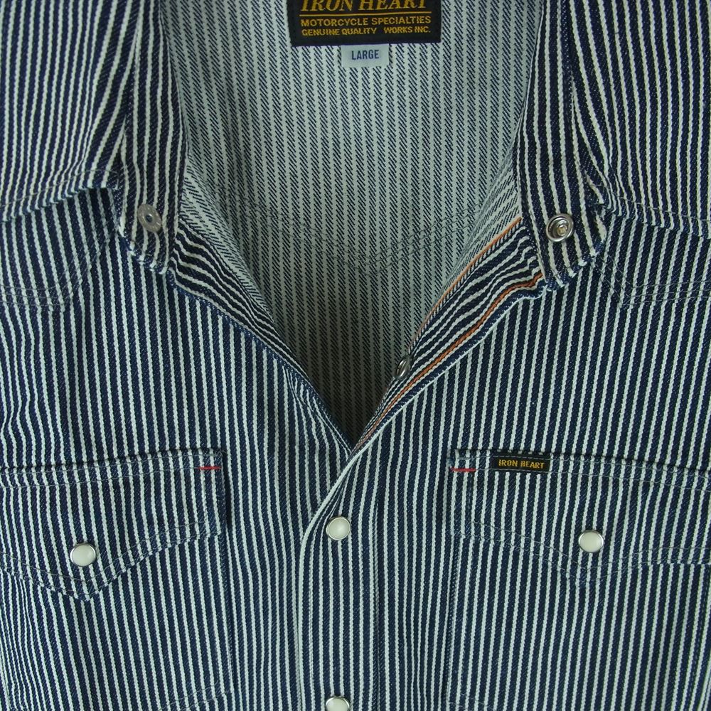 IRON HEART アイアンハート IHSH-07 12oz ヘビーヒッコリー ウエスタン 長袖 シャツ コットン 日本製 ネイビー系 ホワイト系 L【美品】【中古】