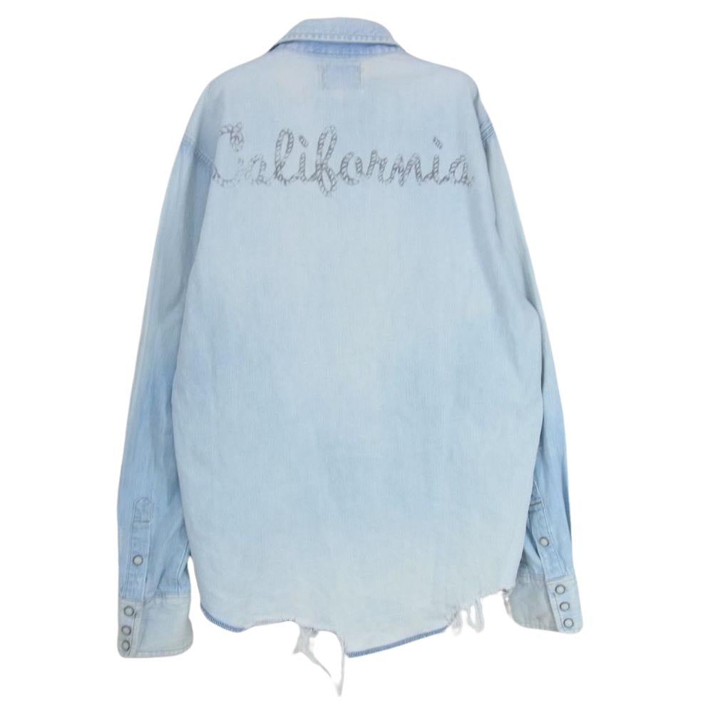 Ron Herman ロンハーマン WS9138 × WRANGLER ラングラー バック プリント ウェスタン 長袖 シャツ インディゴブルー系 L【中古】
