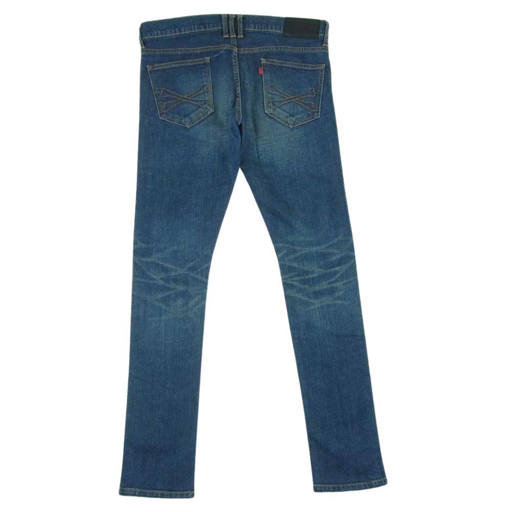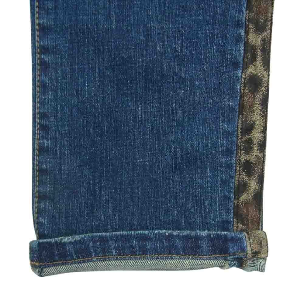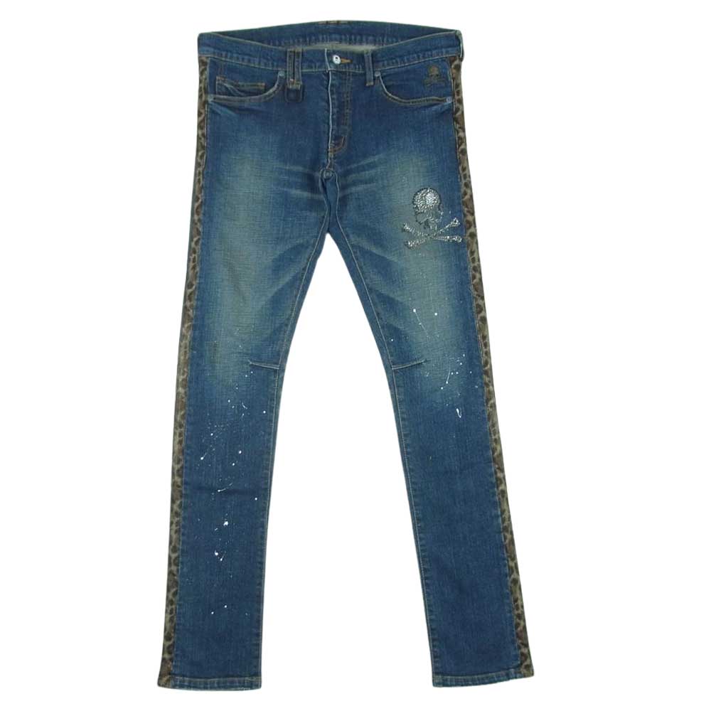 ROEN ロエン ペイント加工 ラインストーン スカル レオパード サイドライン デニム パンツ ジーンズ インディゴブルー系 31【中古】