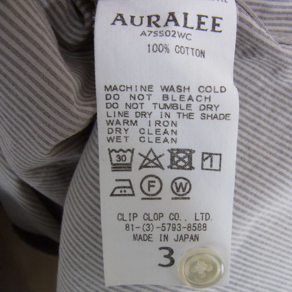 AURALEE オーラリー 17SS A7SS02WC SELVEDGE WEATHER CLOTH OPEN COLLARED ストライプ オープンカラー シャツ グレー系 3【中古】