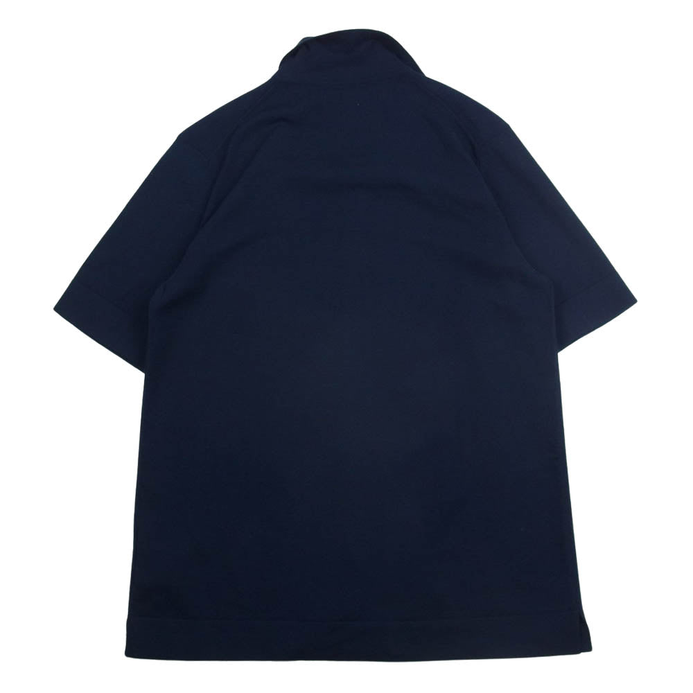 LARDINI ラルディーニ SH707 ミラノリブ オープンカラー ニット 半袖 シャツ ネイビー系 44【新古品】【未使用】【中古】