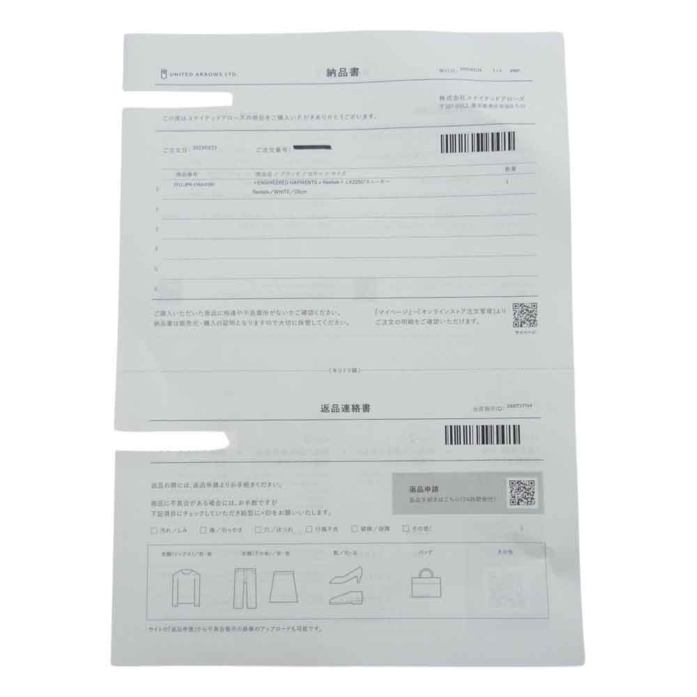 Engineered Garments エンジニアードガーメンツ FZ5848 × Reebok リーボック LX2200 EG2200 アシンメトリー スニーカー ホワイト系 28cm【極上美品】【中古】