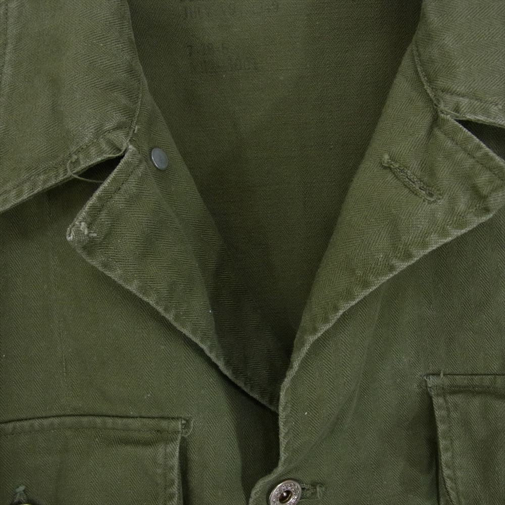 アメリカ軍 40s~50s M-47 HBT 月桂樹ボタン ヘリンボーン ユーティリティ ミリタリー ジャンブル ファティーグ シャツ ジャケット カーキ系 サイズ表記無【中古】