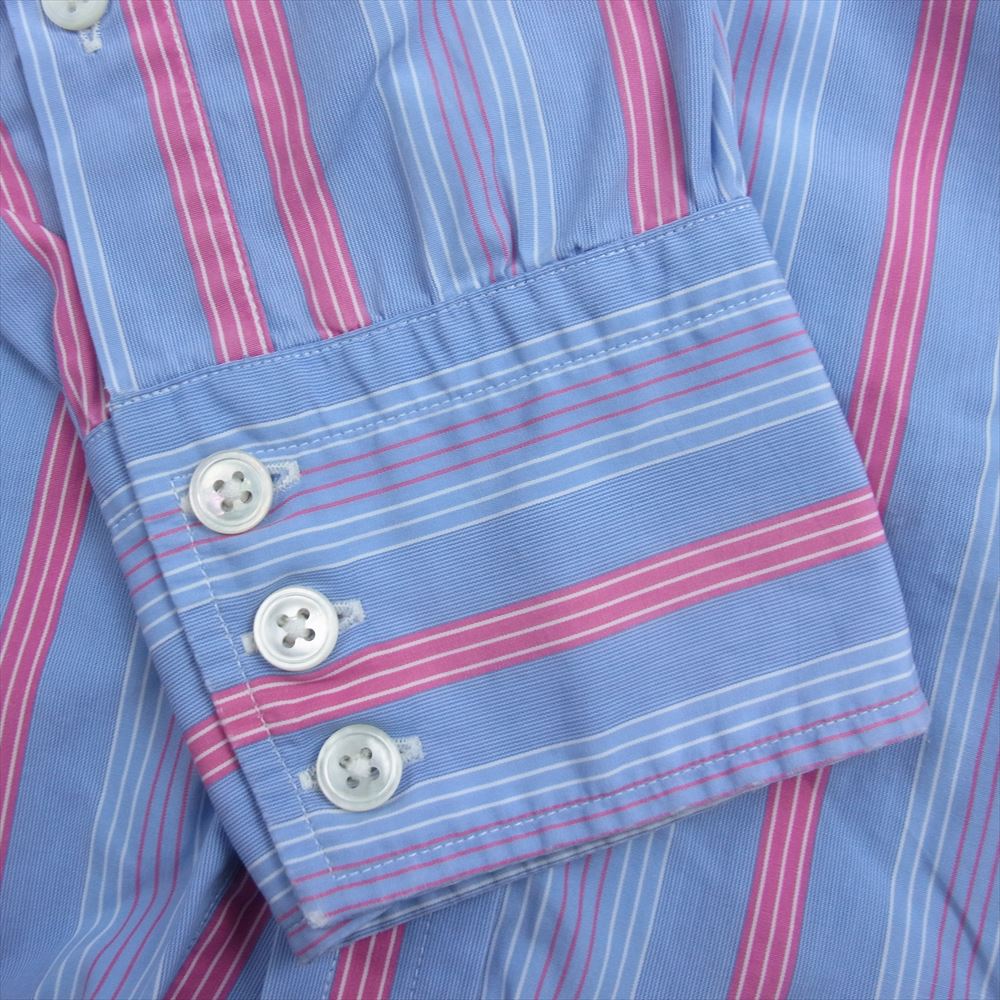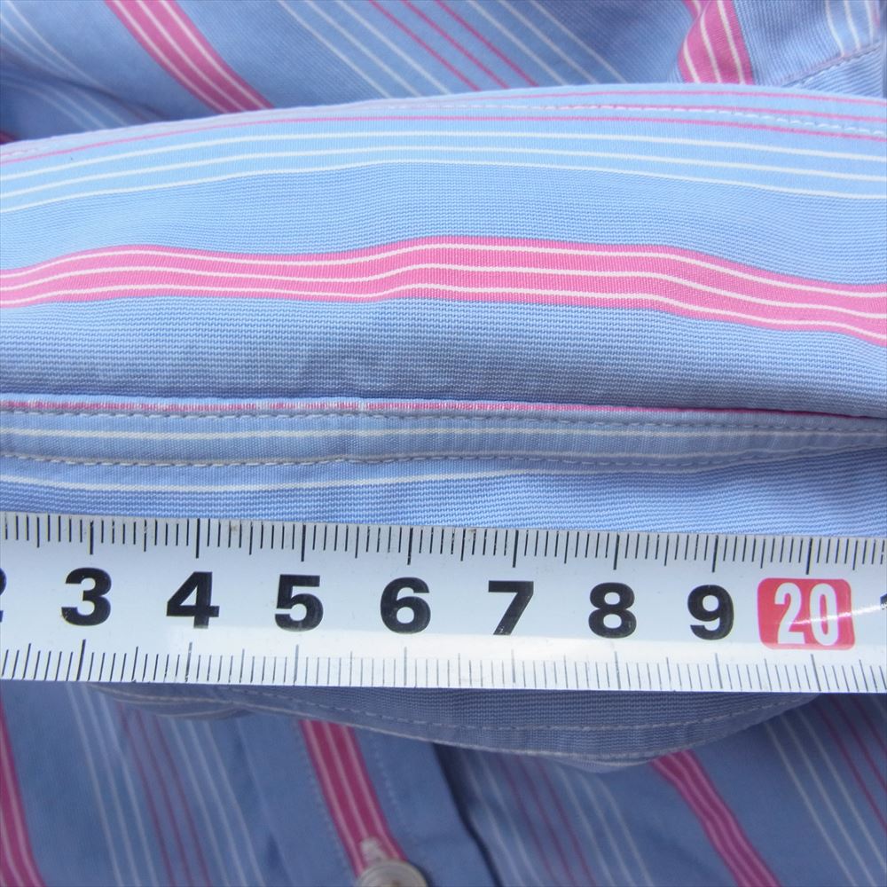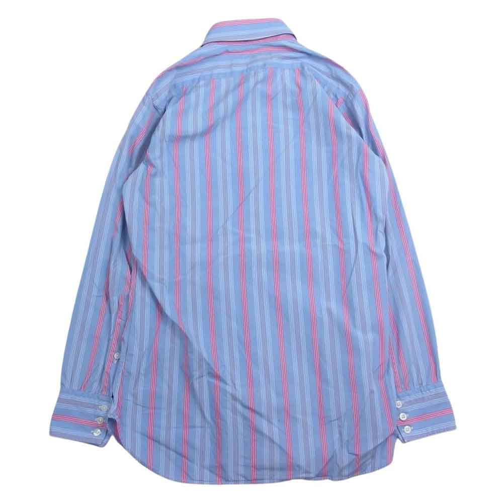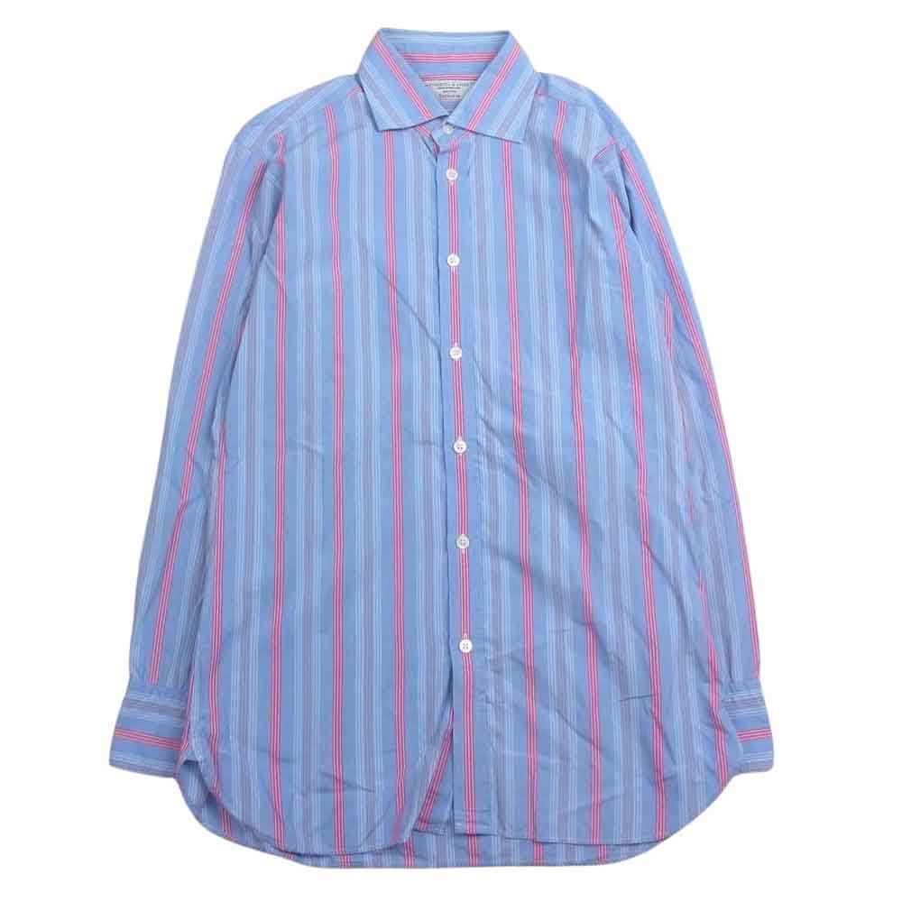 ターンブル&アッサー イギリス製 ワイドカラー ロンドン ストライプ 長袖 シャツ ブルー系 15.5【中古】