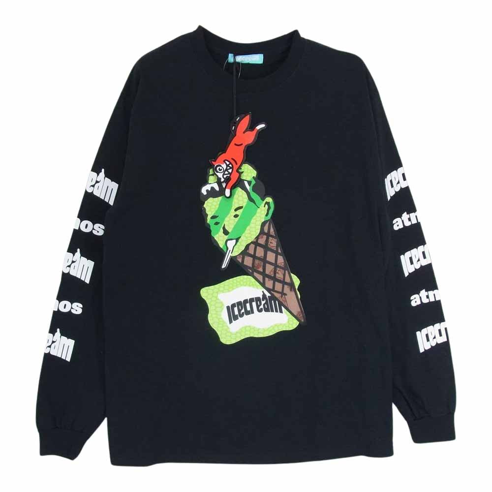 ICE CREAM アイスクリーム BILLIONAIRE BOYS CLUB ビリオネア ボーイズ クラブ × ATMOS EX CON アトモス エクス クルーシブ プリント 長袖 Tシャツ ブラック系 M【美品】【中古】