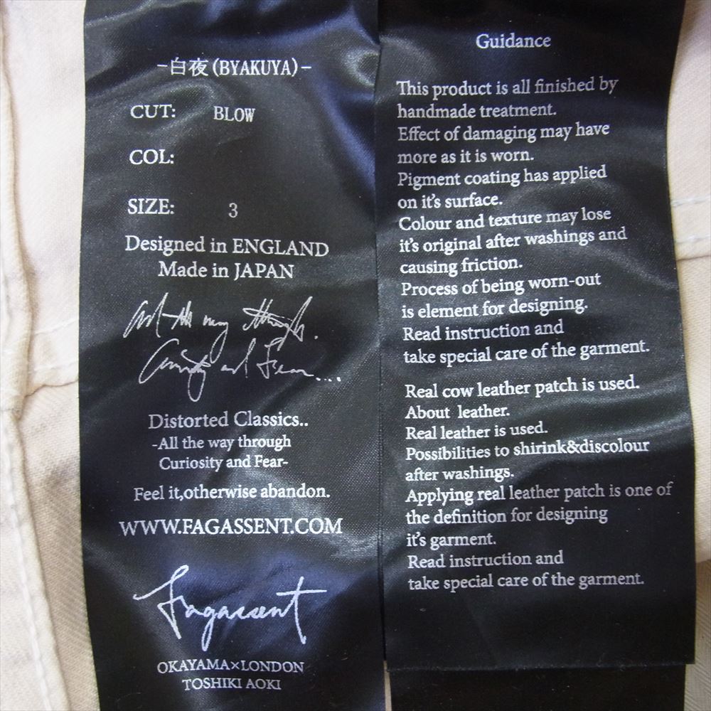 ファガッセン BYAKUYA JESUS CUT 白夜 カットオフ ダメージ加工 スキニー デニム パンツ ホワイト ホワイト系 3【中古】