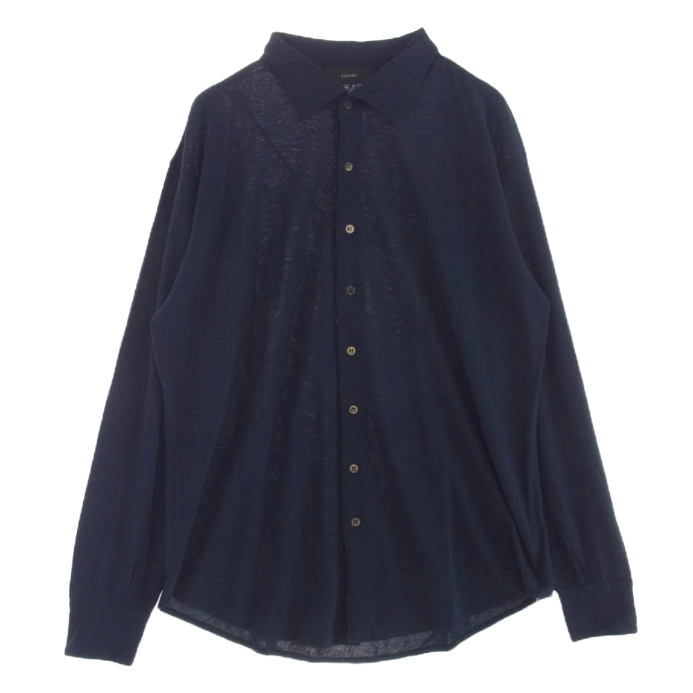 ZANONE ザノーネ イタリア製 ハイクオリティコットン天竺 長袖シャツ ネイビー系 54【中古】