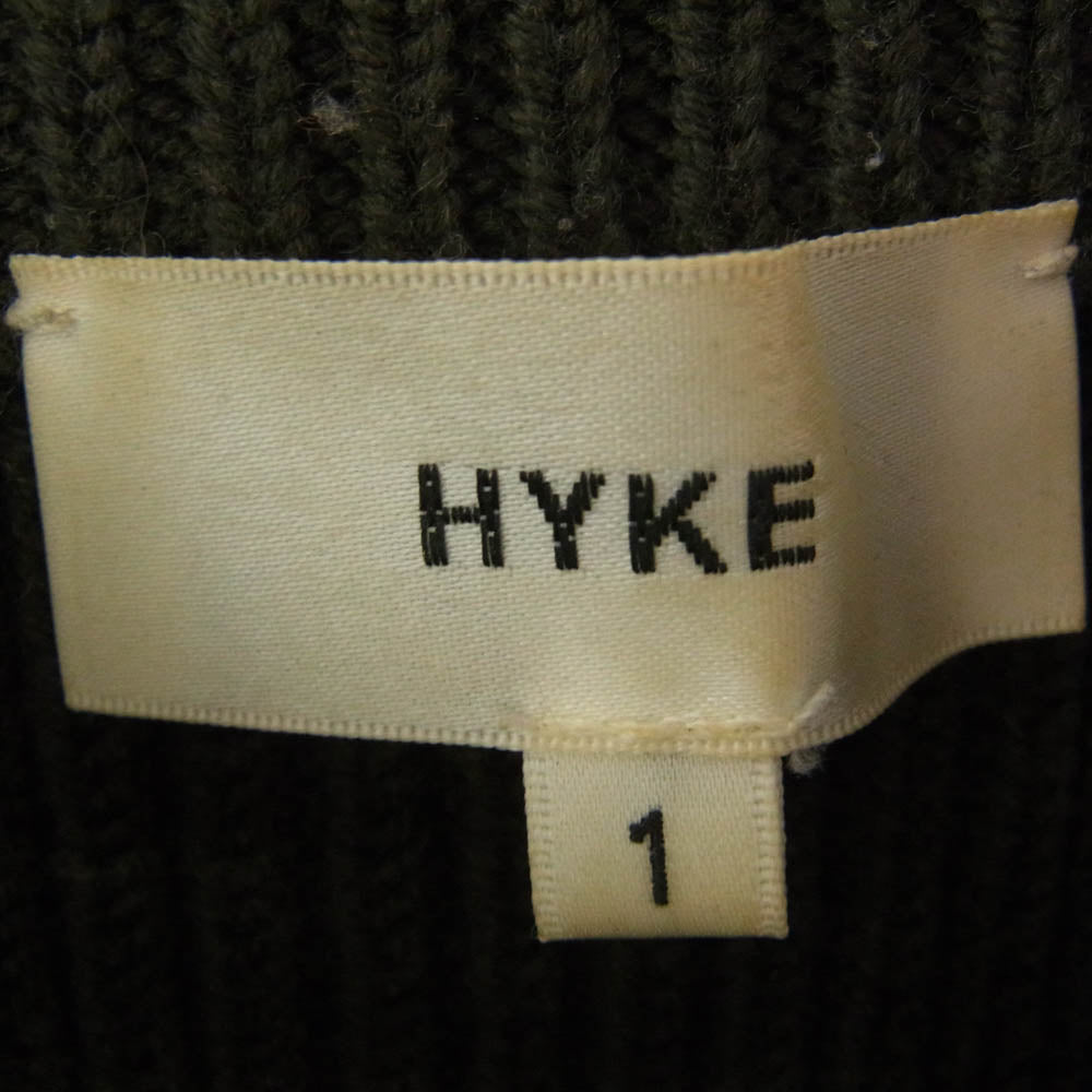 HYKE ハイク 162-11077 RIB CREWNECK SWEATER リブ クルーネック セーター カーキ系 1【中古】