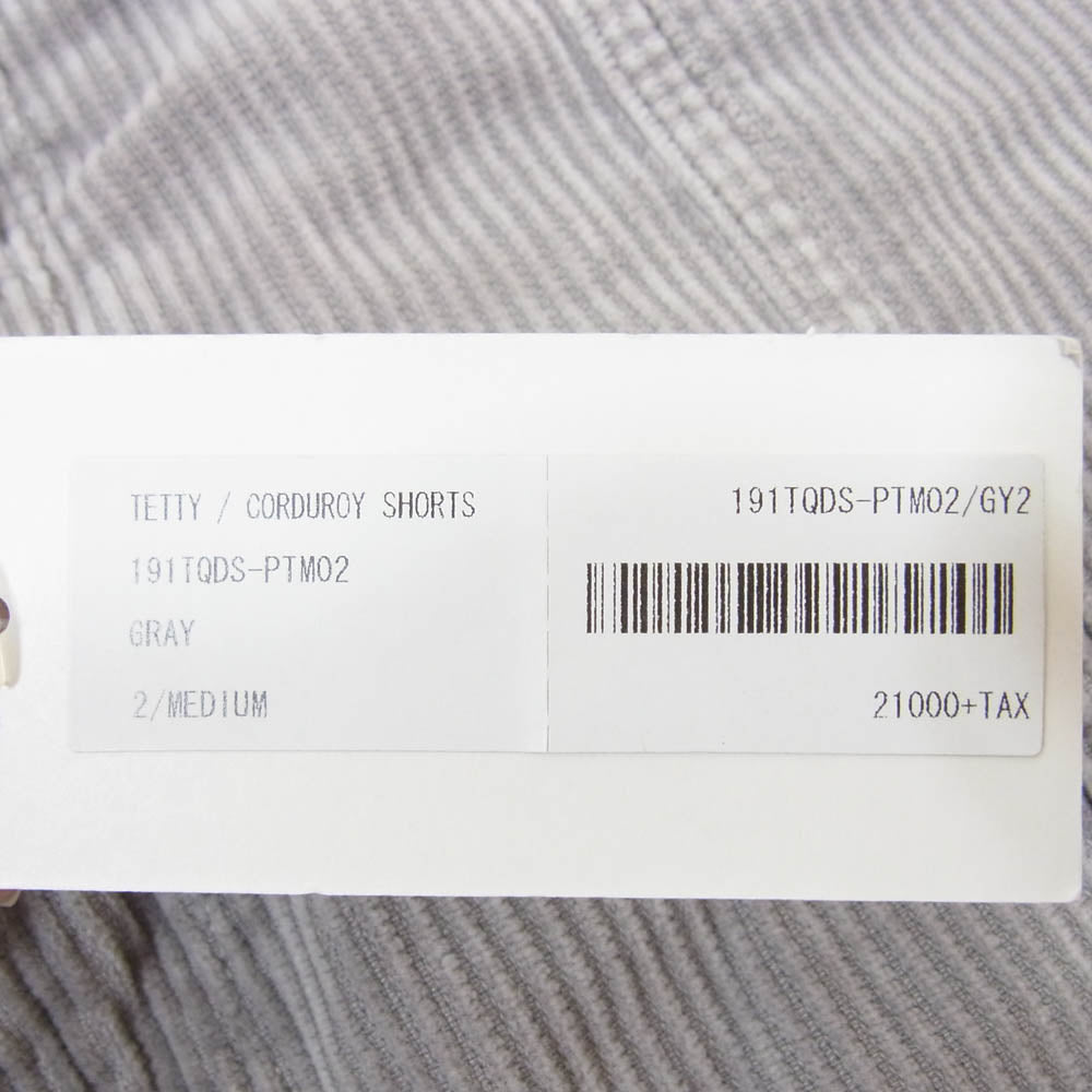 商品名 19SS 191TQDS-PTM02 TETTY CORDUROY SHORTS ウォッシュ加工 コーデュロイ ショート パンツ 2