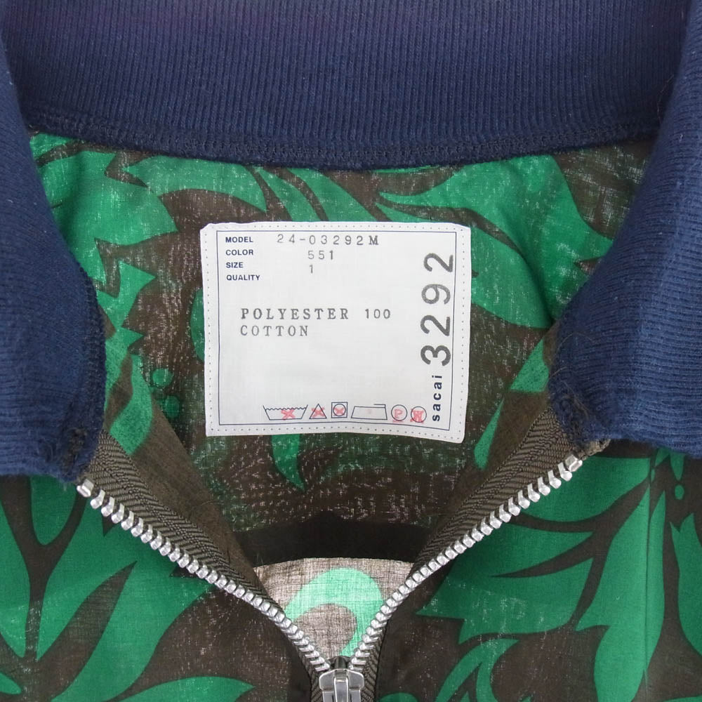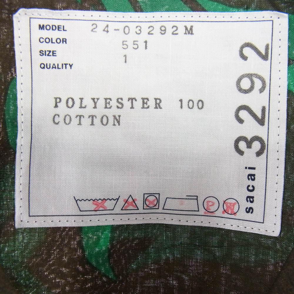Sacai サカイ 24SS Floral Print Pullover フローラル プリント プルオーバー 半袖 シャツ グリーン系 1【中古】