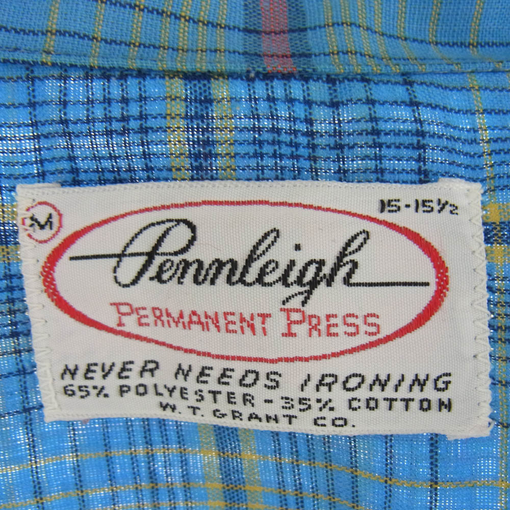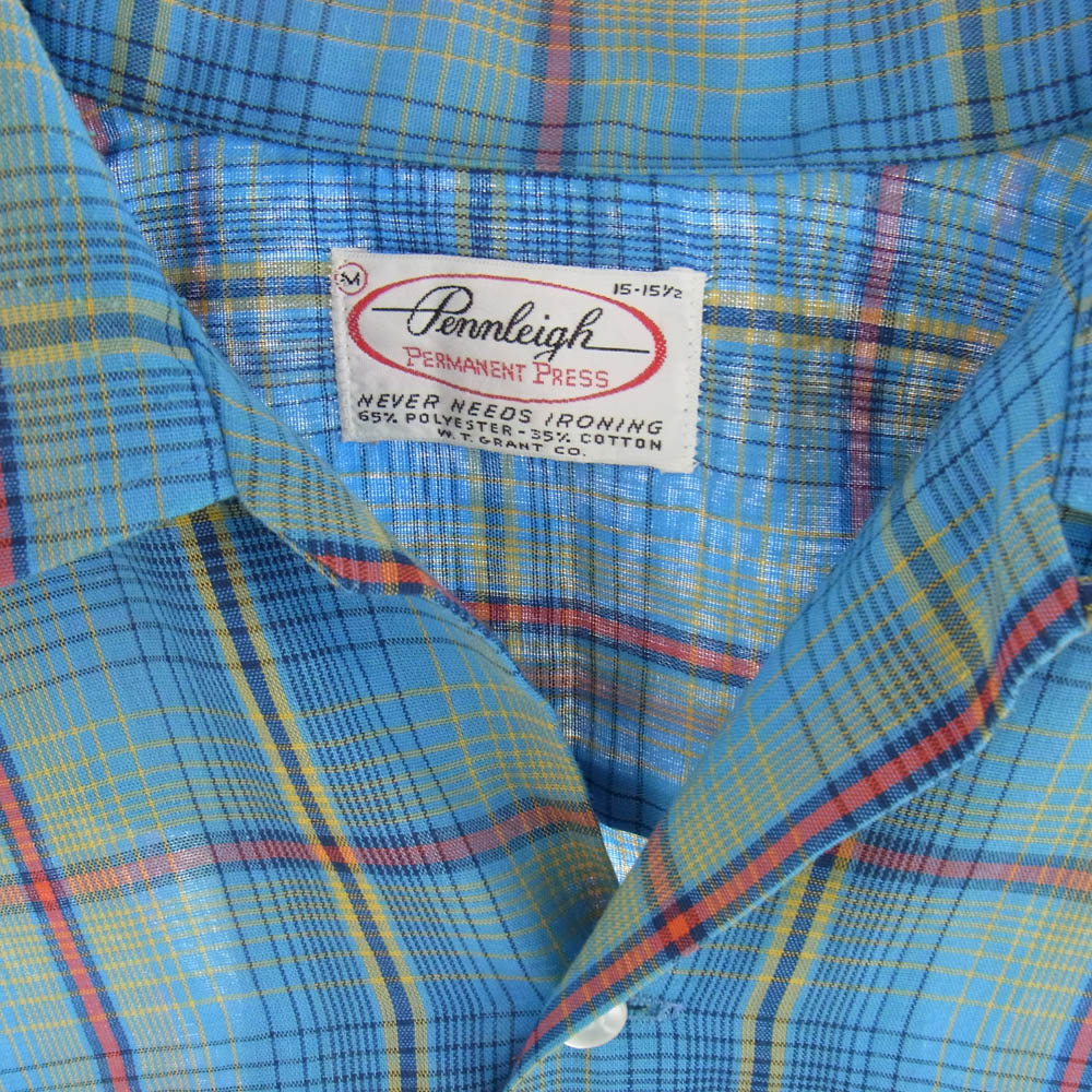ペンリー 60's~70's チェック柄 開襟 襟芯 シャツ 長袖 マルチカラー系 M【中古】