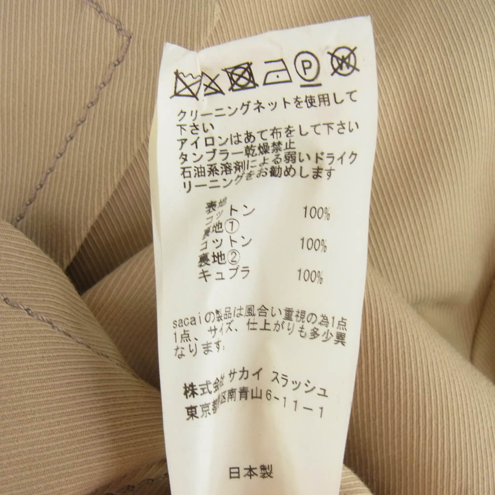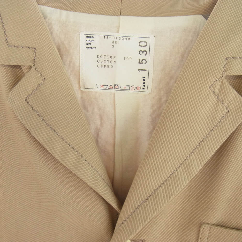 Sacai サカイ 18AW 18-01530M ステッチデザイン チェスター コート ベージュ系 3【中古】