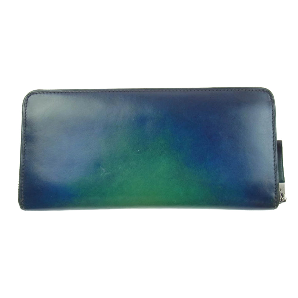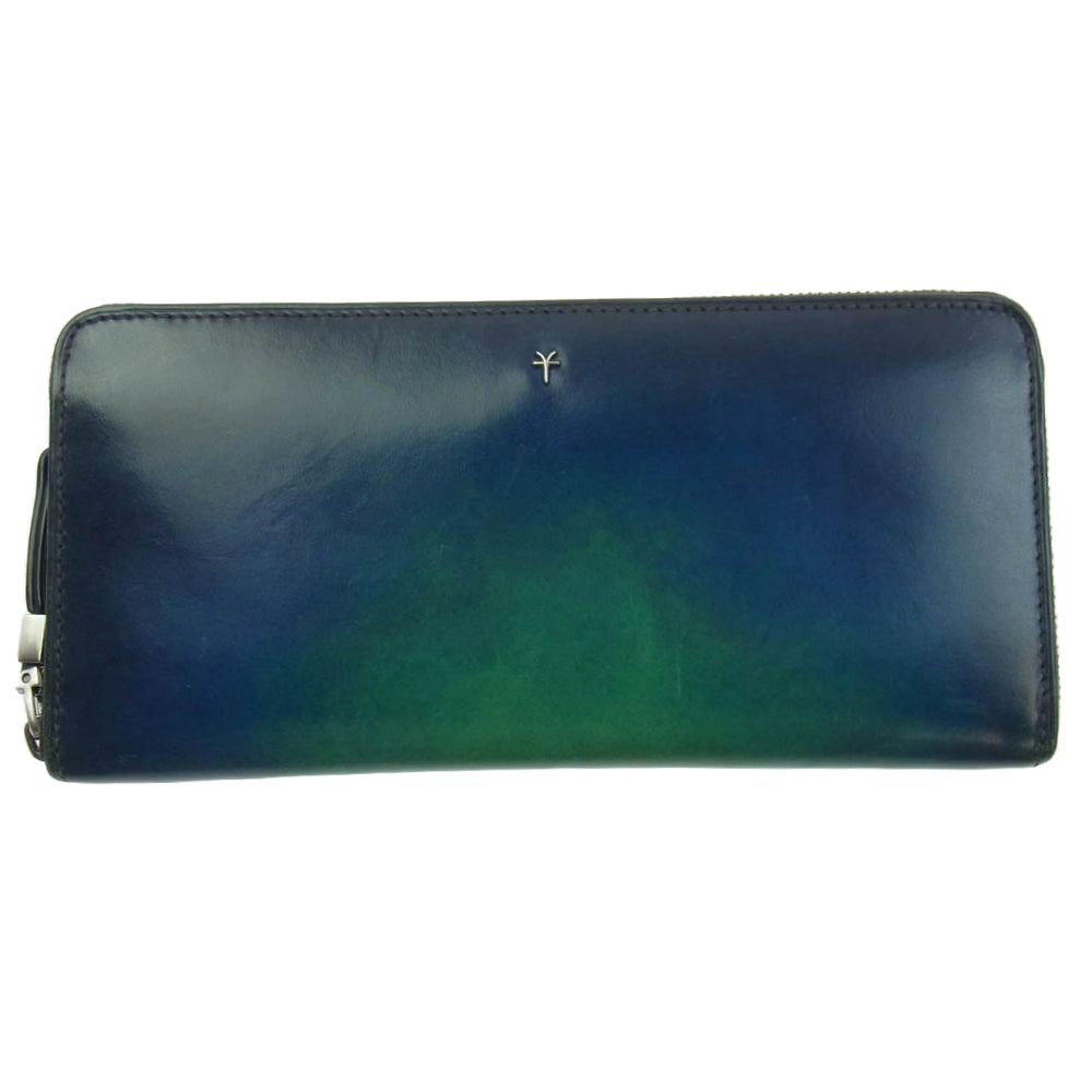 ユハク YFP114-30 Proof Foschia ラウンドファスナー 牛革 レザー ウォレット 長財布 ブルー系 ライトグリーン系【中古】