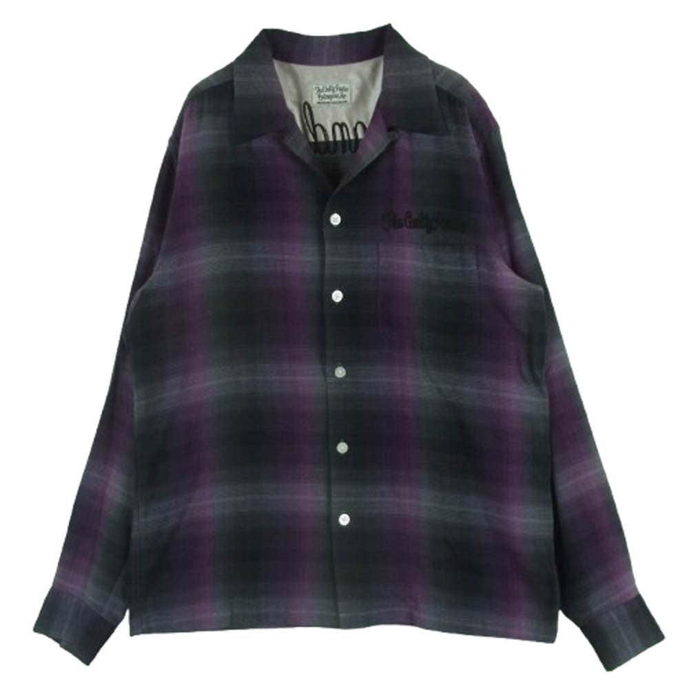 WACKO MARIA ワコマリア 10AW 10AW-SHI-08 ロゴ 刺繍 レーヨン 長袖 チェック シャツ パープル系 ブラック系 グレー系 L【中古】