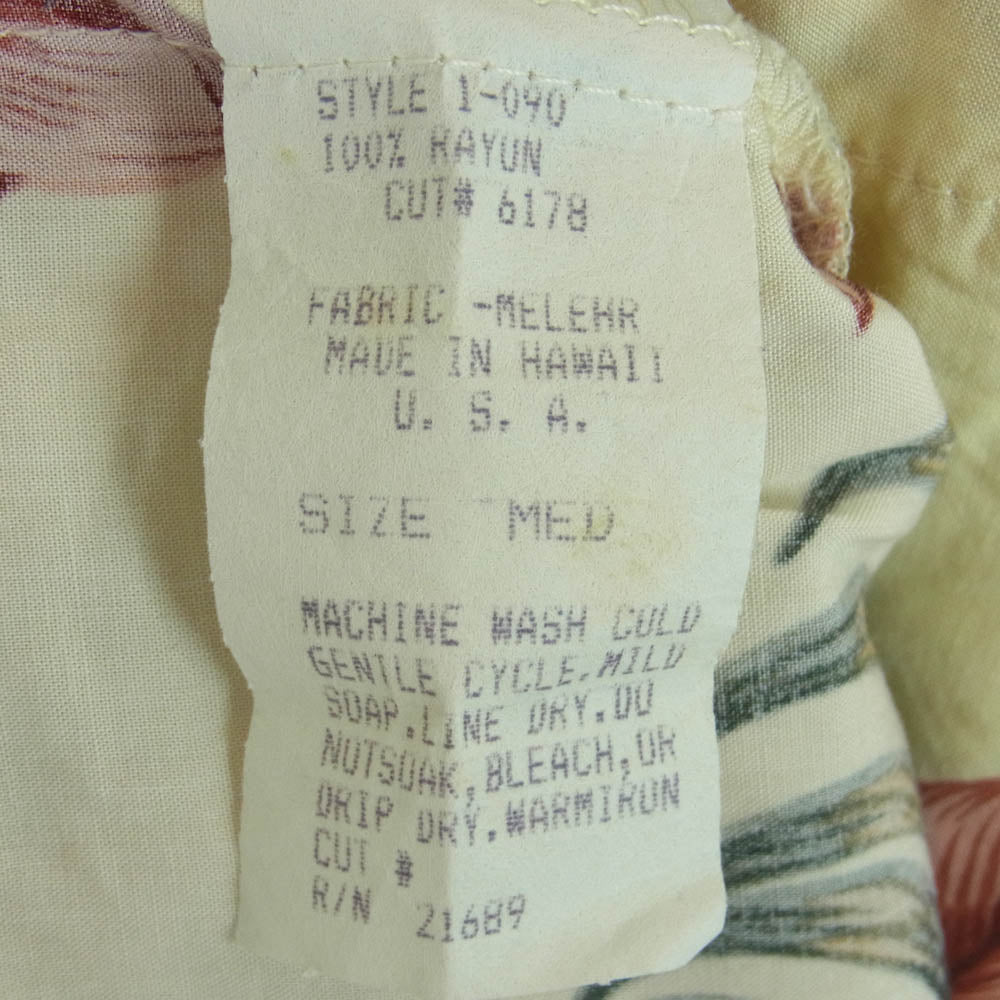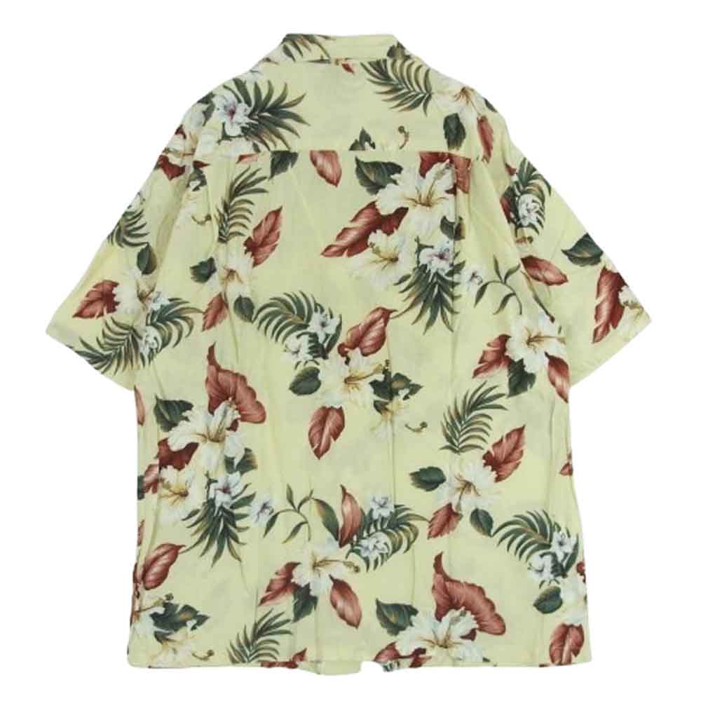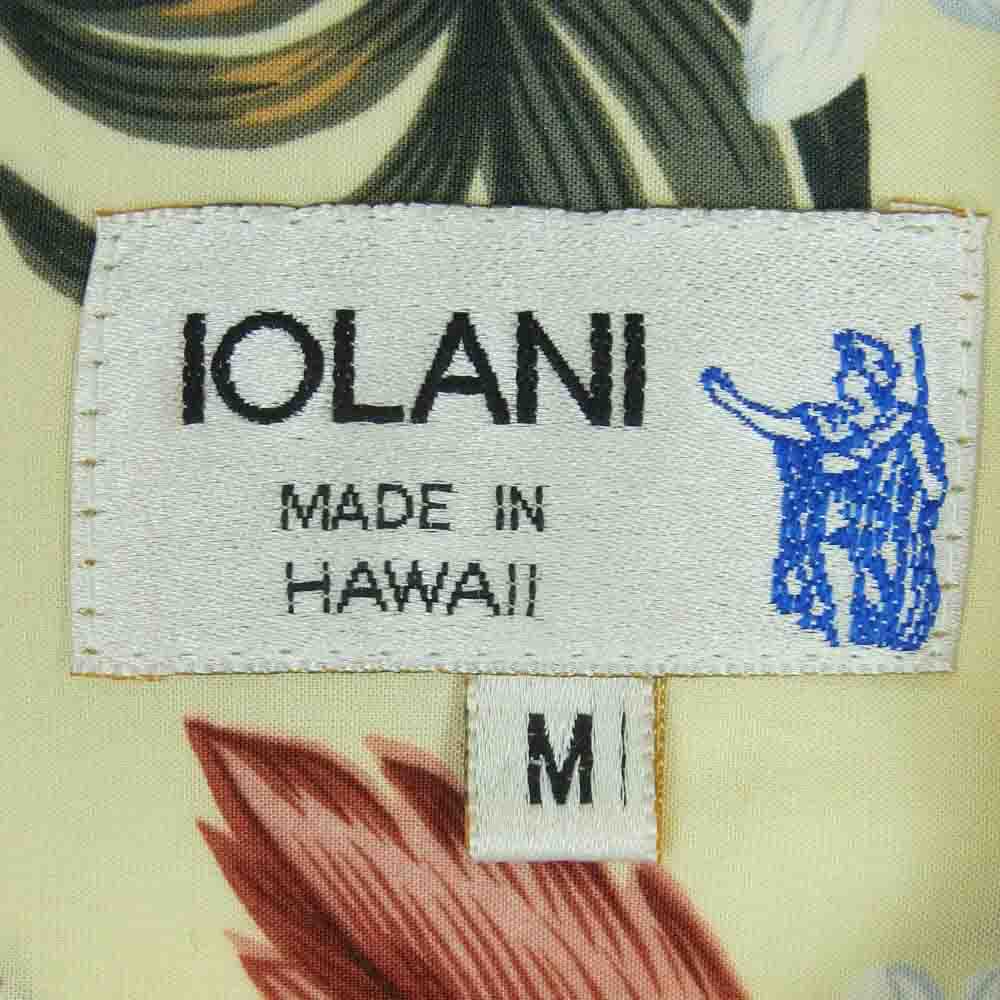 イオラニ 6178 花柄 総柄 レーヨン ハワイアン アロハ シャツ 半袖 ハワイ製 イエロー系 クリーム色系 M【中古】