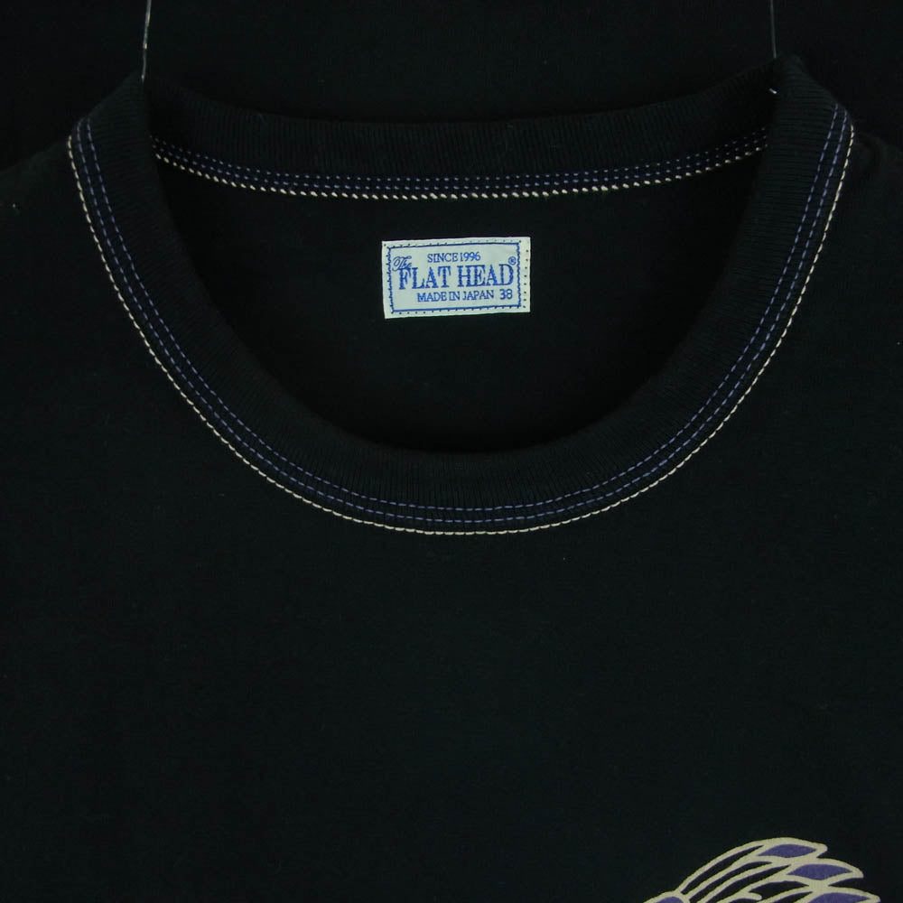 THE FLAT HEAD ザフラットヘッド FN-THC-038 T SHIRT THC SERIES 3本針の1本外し縫製 ヘビー ウェイト プリント 半袖 Tシャツ ブラック系 38【新古品】【未使用】【中古】