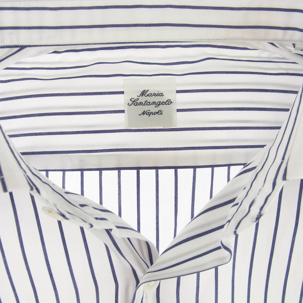 マリアサンタンジェロ 18-PR00-68 イタリア製 ストライプ 長袖 シャツ ブルー系 ホワイト系【新古品】【未使用】【中古】
