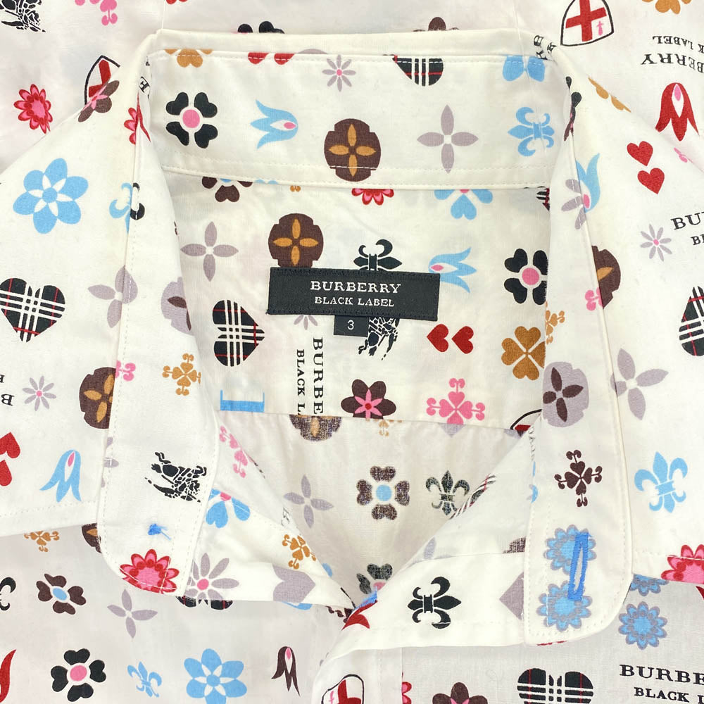 BURBERRY BLACK LABEL バーバリーブラックレーベル BMW12-002-02 モノグラム 総柄 レギュラーカラー 長袖 シャツ ホワイト系 35【中古】