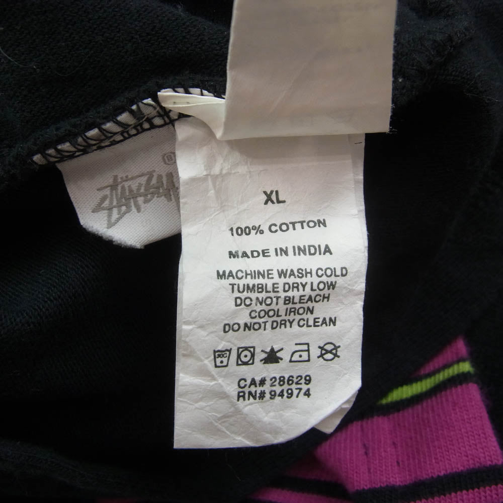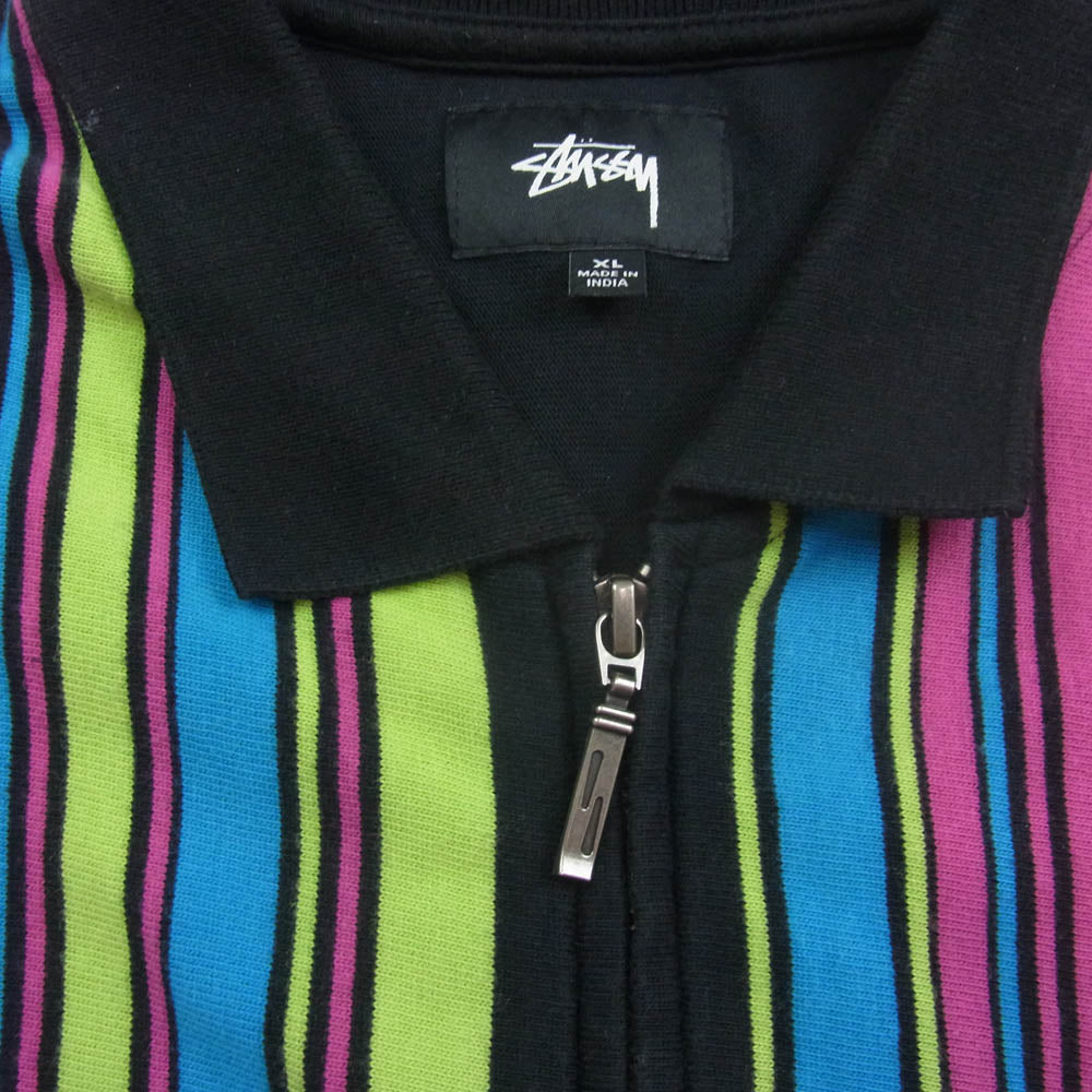 STUSSY ステューシー 19AW 1140114 Simon Longsleeve Zip Polo ジップアップ ストライプ 長袖 ポロシャツ マルチカラー ブラック系 XL【中古】