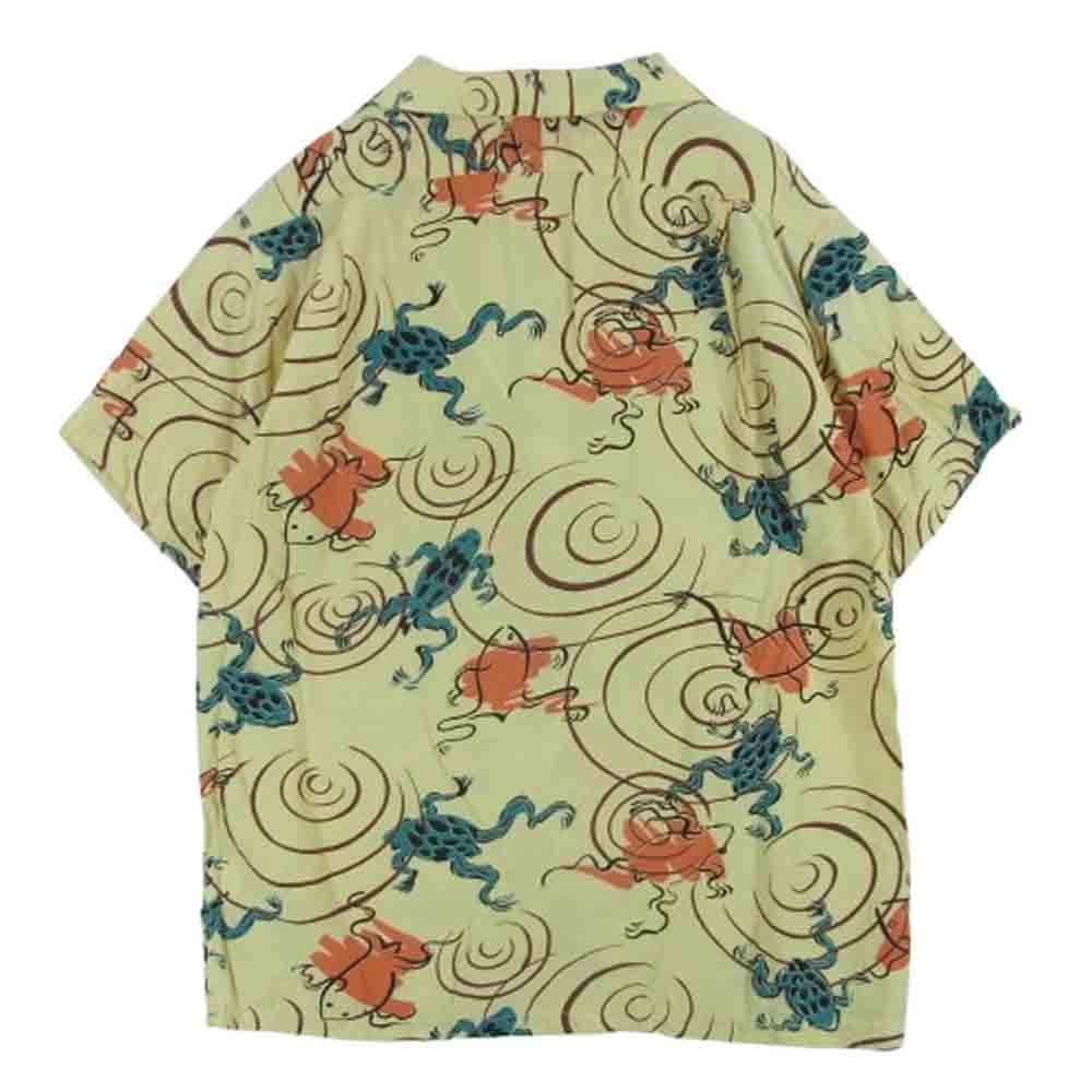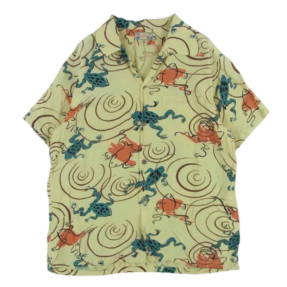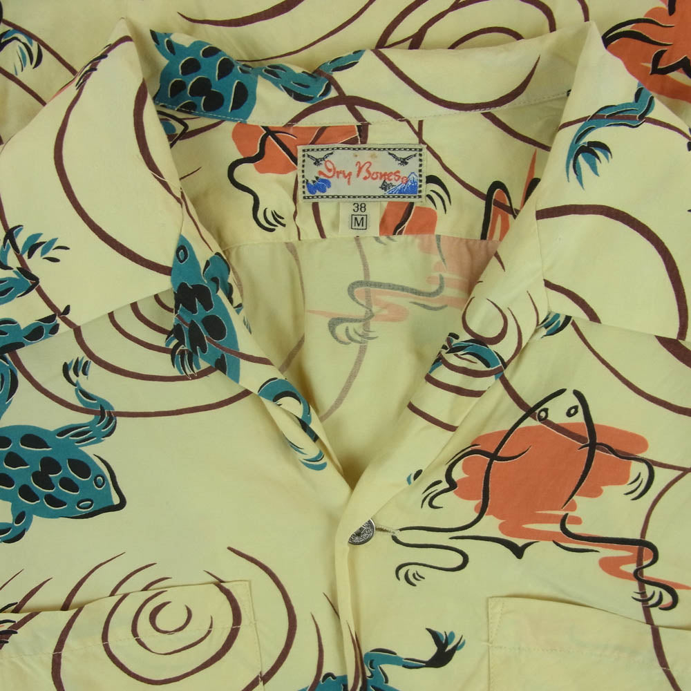 ドライボーンズ 蛙総柄 オープンカラー レーヨン アロハ 半袖 シャツ イエロー系 クリーム色系 38 M【中古】