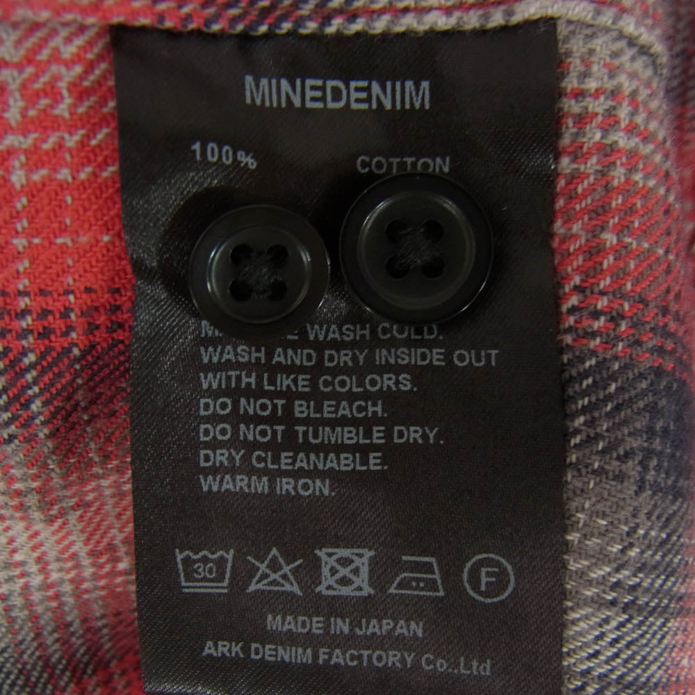 MINEDENIM マインデニム オンブレチェック フランネル オープンカラー 長袖 シャツ レッド系 3【中古】