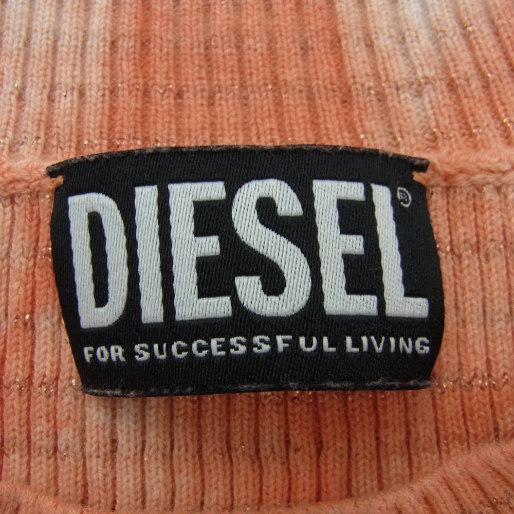DIESEL ディーゼル A05054 Dロゴ タイダイ ラメニット 半袖 Tシャツ オレンジ系 M【中古】
