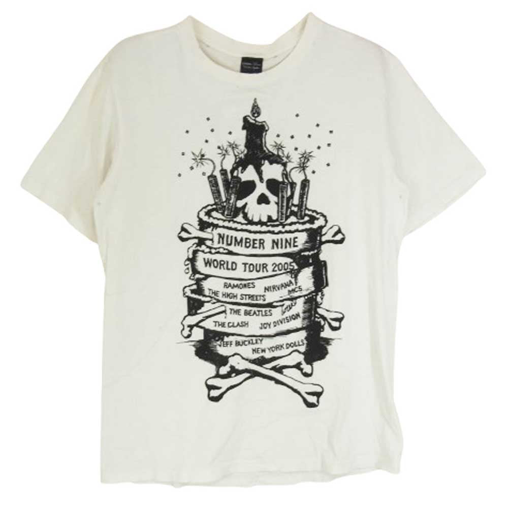 NUMBER(N)INE ナンバーナイン 05年製 WORLD TOUR 2005 ハイスト期 ダメージ加工 Tシャツ ホワイト系 2【中古】