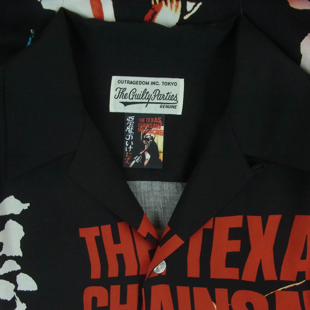 WACKO MARIA ワコマリア 22SS 悪魔のいけにえ テキサス チェーンソー ハワイアン アロハ 開襟 レーヨン 半袖 シャツ ブラック系 XL【中古】