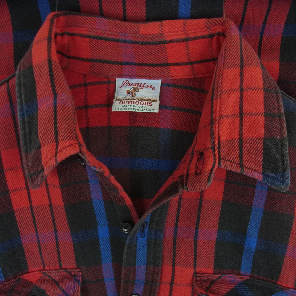 プレンティス USA製 チェック 長袖 ネル シャツ RN23556 レッド系 ブルー系【中古】