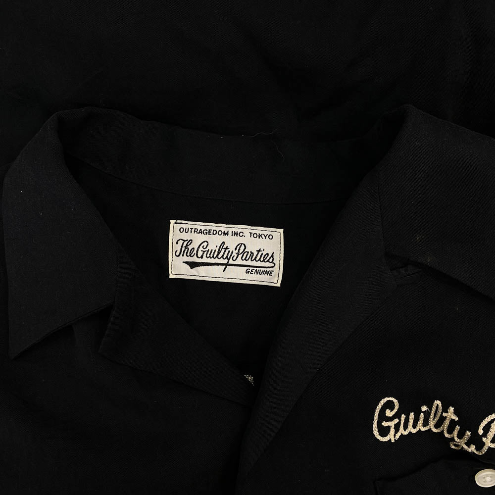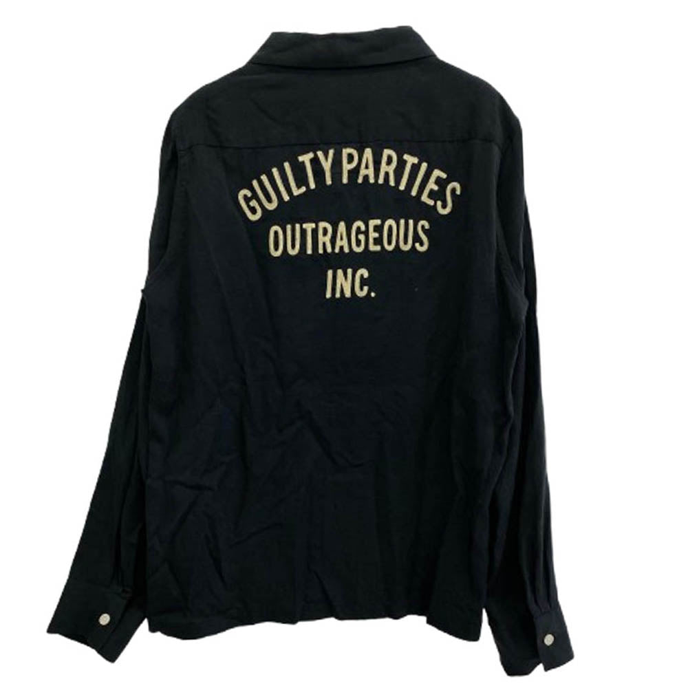 WACKO MARIA ワコマリア ロゴ刺繍 オープンカラー 長袖 シャツ ブラック系 L【中古】
