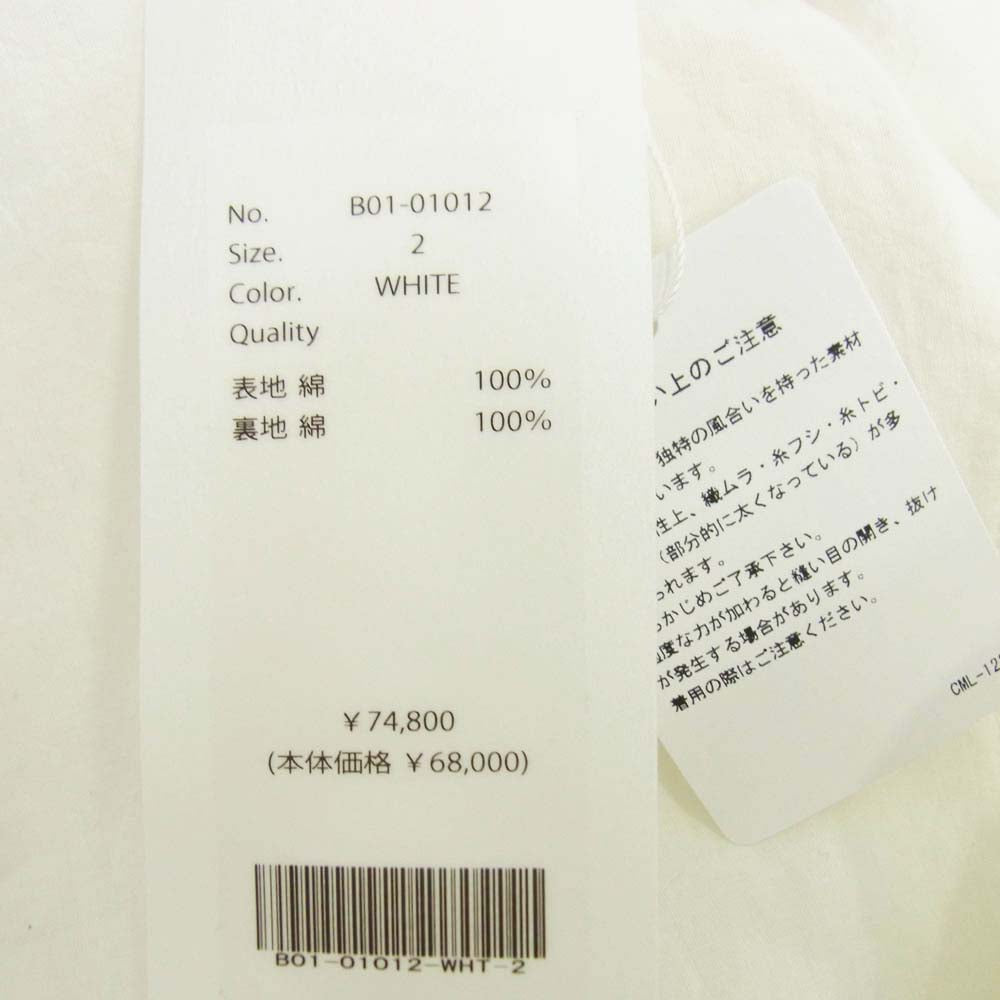 COMOLI コモリ 25SS B01-05044 コットンジャージ ポートネック 長袖 Tシャツ カットソー ホワイト系 2【中古】