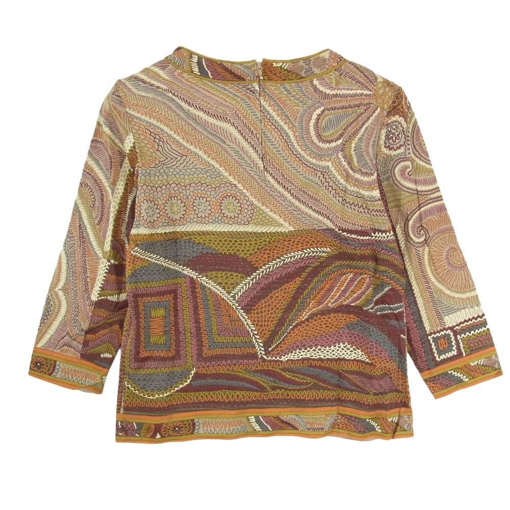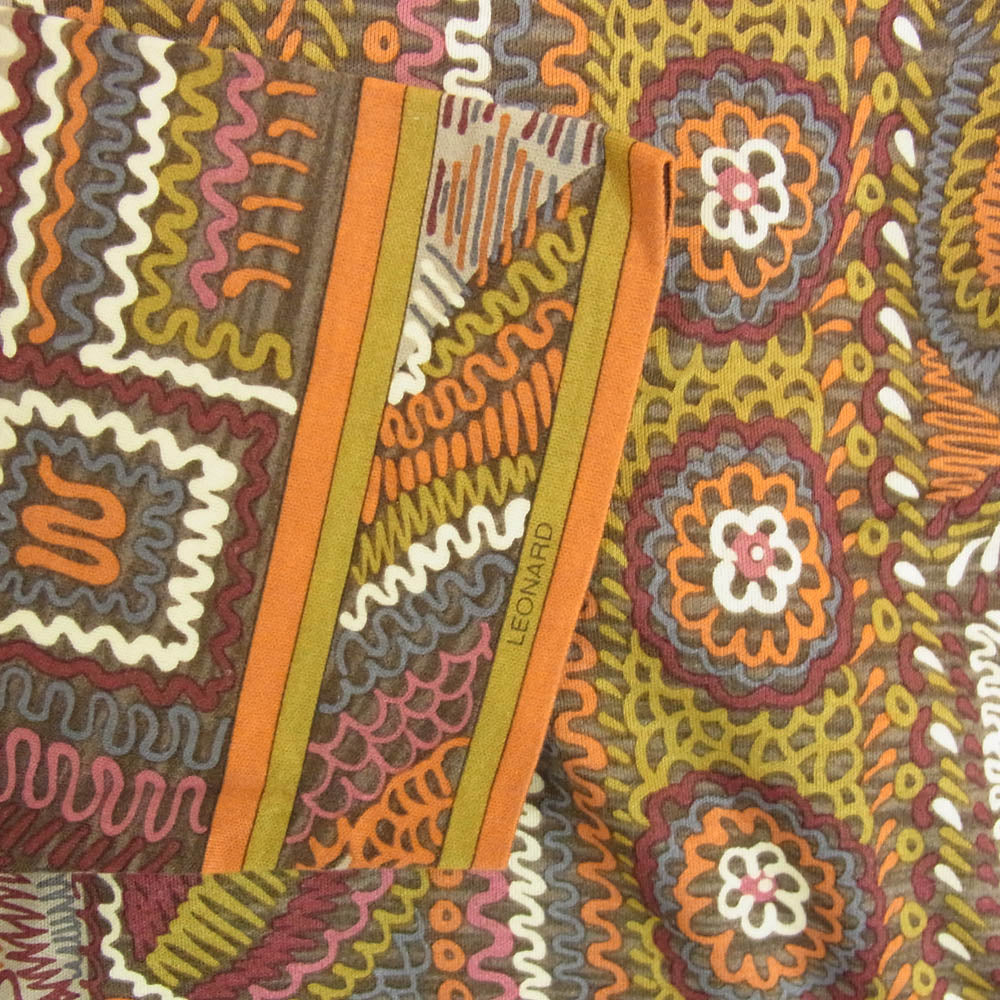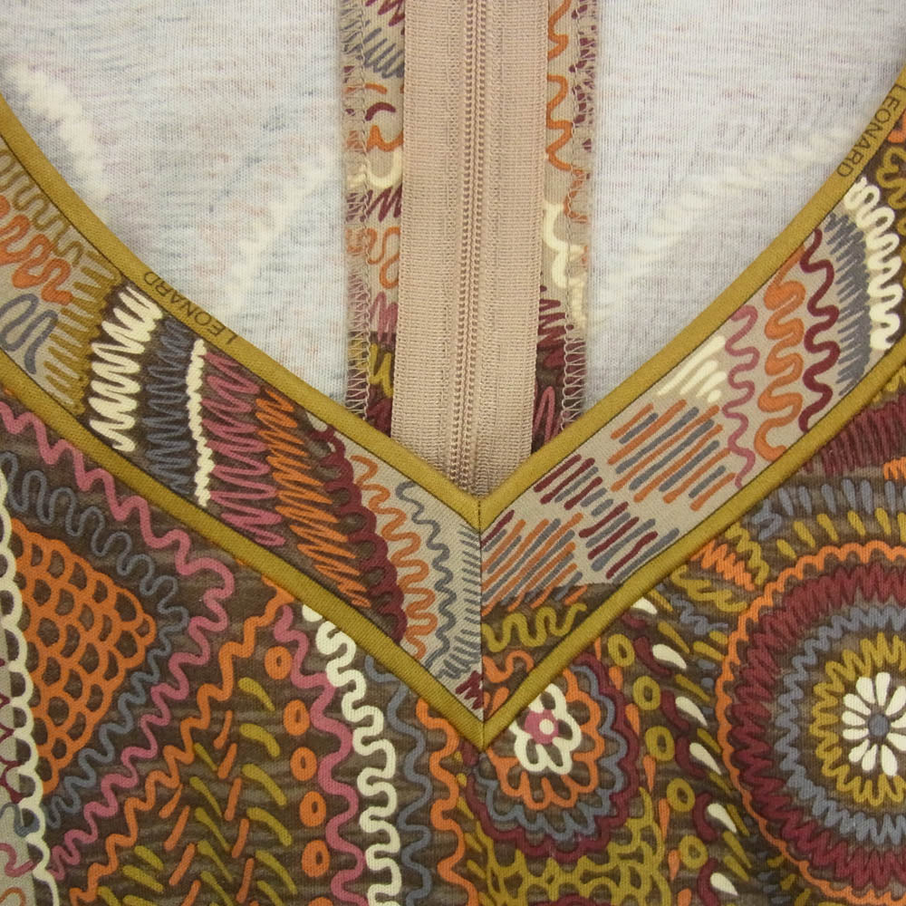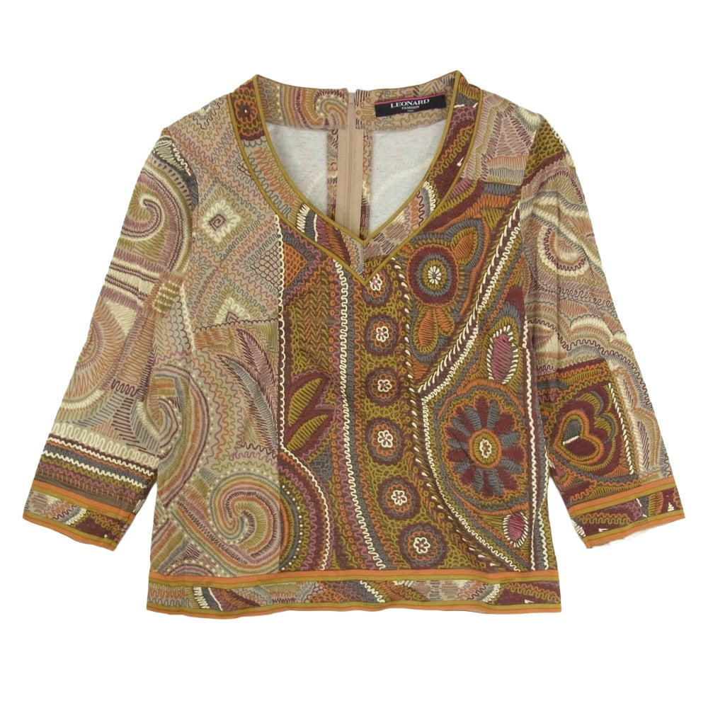 LEONARD レオナール FASHION ファッション 総柄 Vネック 長袖 カットソー ブラウン系 L【中古】