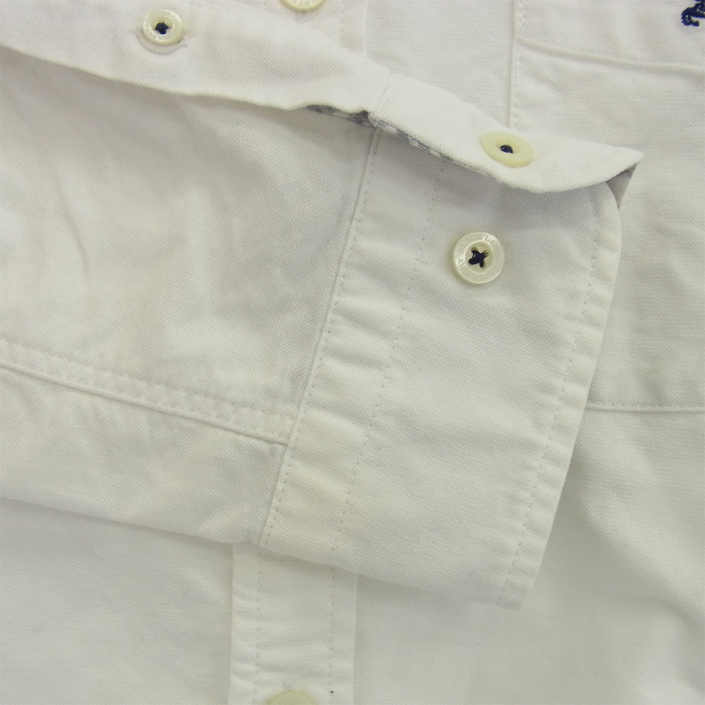 BURBERRY BLACK LABEL バーバリーブラックレーベル D1M07-606-02 ポケット 刺?ロゴ ボタンダウン コットン 長袖シャツ オフホワイト系 2【中古】
