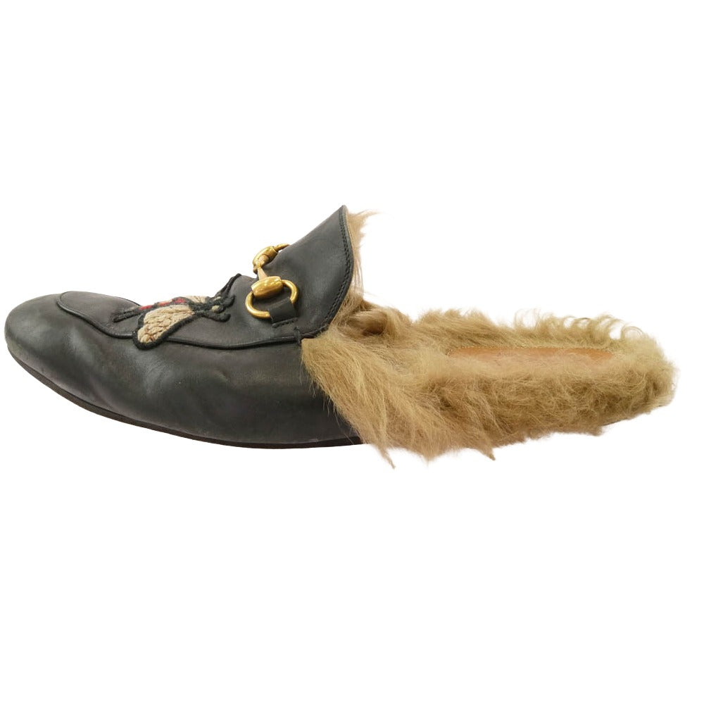 GUCCI グッチ エンブロイダリー ホースビット プリンスタウン レザー サンダル ブラック系【中古】