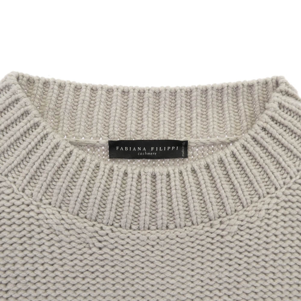 ファビアナフィリッピ カシミヤ100% 袖ケーブル編み ボトルネック ニット セーター オフホワイト系 US XS【中古】